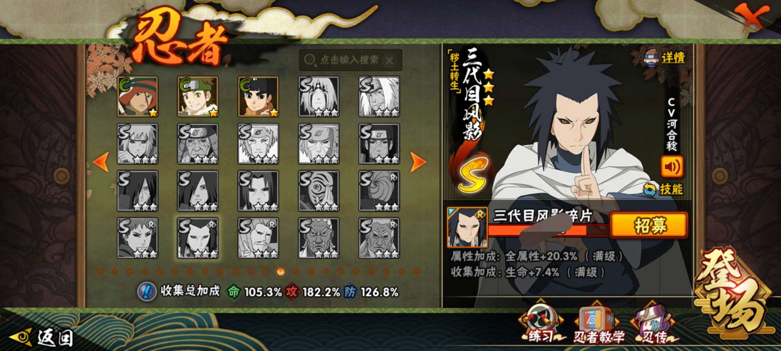 V15,33s,51a,2000万战力,34000金币,漂泊系列全,五星白面具,忍战樱3代风影快出了