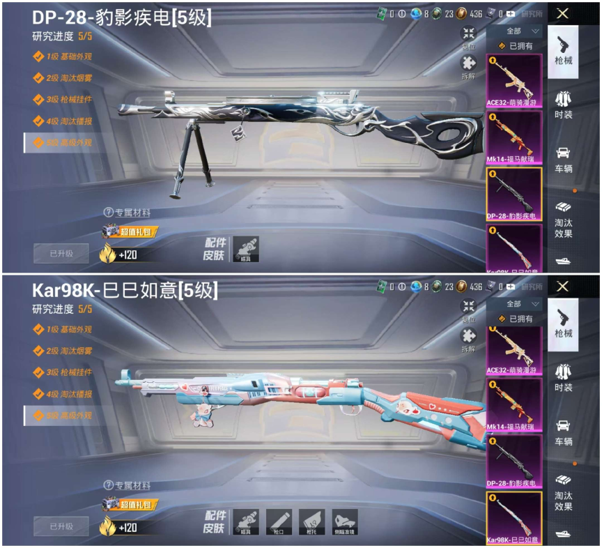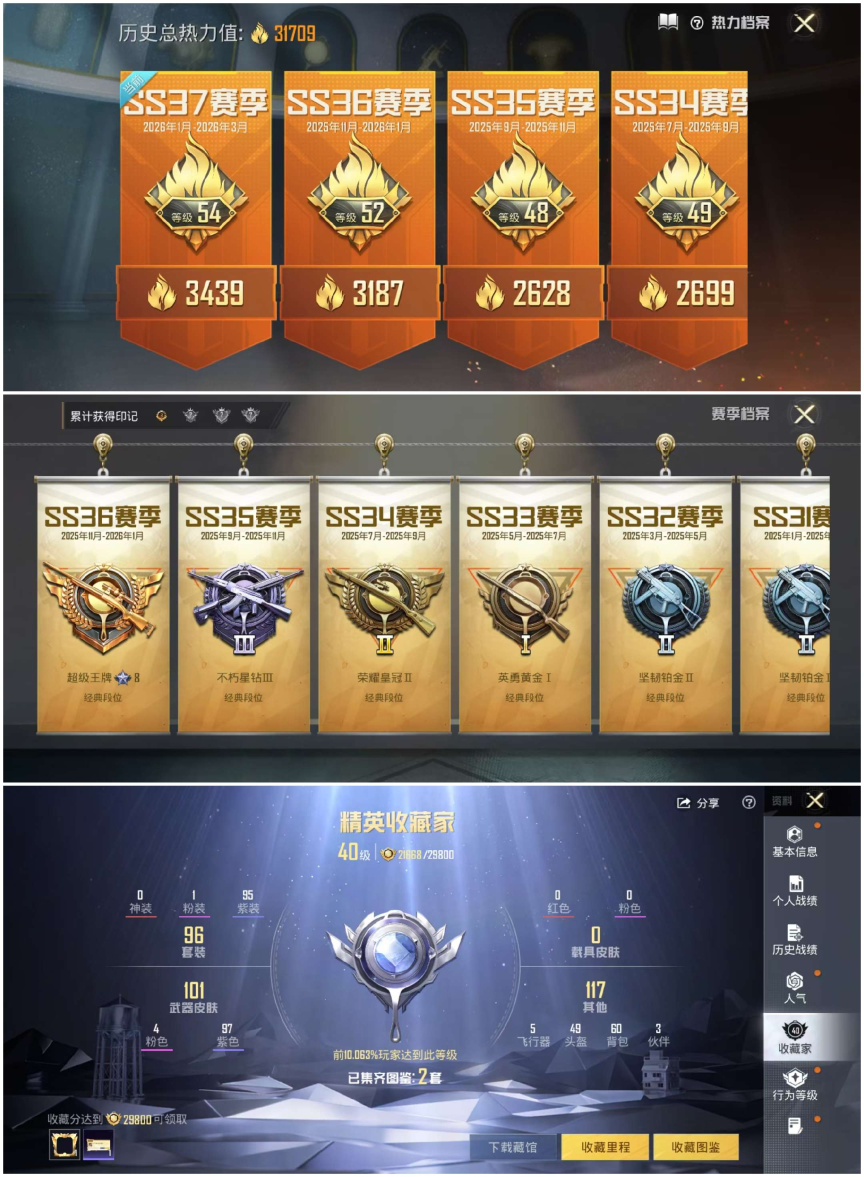 -【可二次 双字ID 1粉装-4特效枪(三把五满级)地铁己开-多装备 蓝冰羽 异瞳寒姬】1粉装-4特效枪-31709热力值-3王牌印记-96套装-118枪皮【优质套装】: 异瞳寒姬【特效枪等级】:Kar98K-巳巳如意(五级- Kar98K-巳巳如意)【优质武器皮肤】: Kar98K-巳巳如意【稀有武器皮肤】: DBS-乌木金纹 SCAR-L-海盐豹豹 Kar98K-巳巳如意