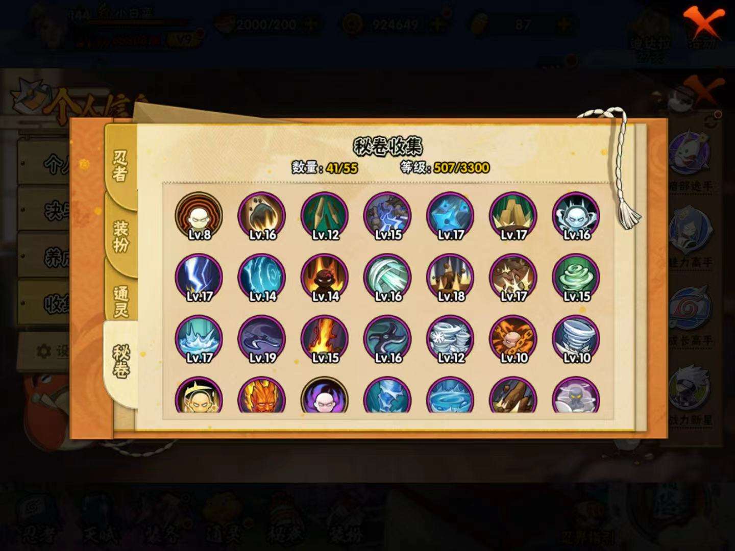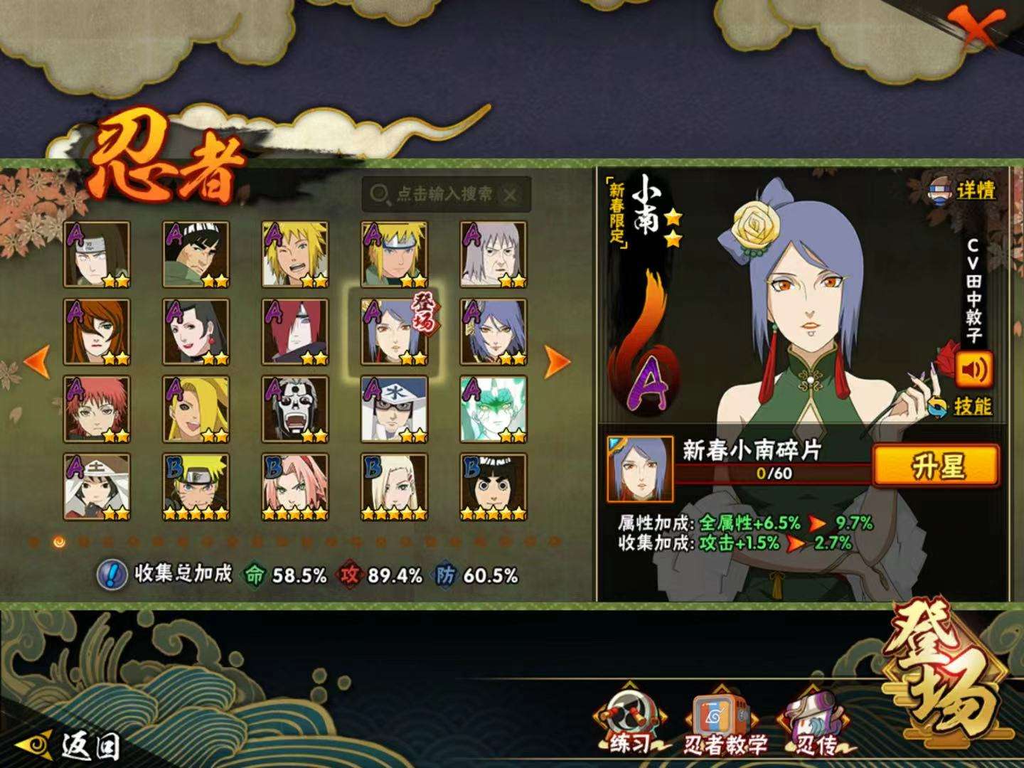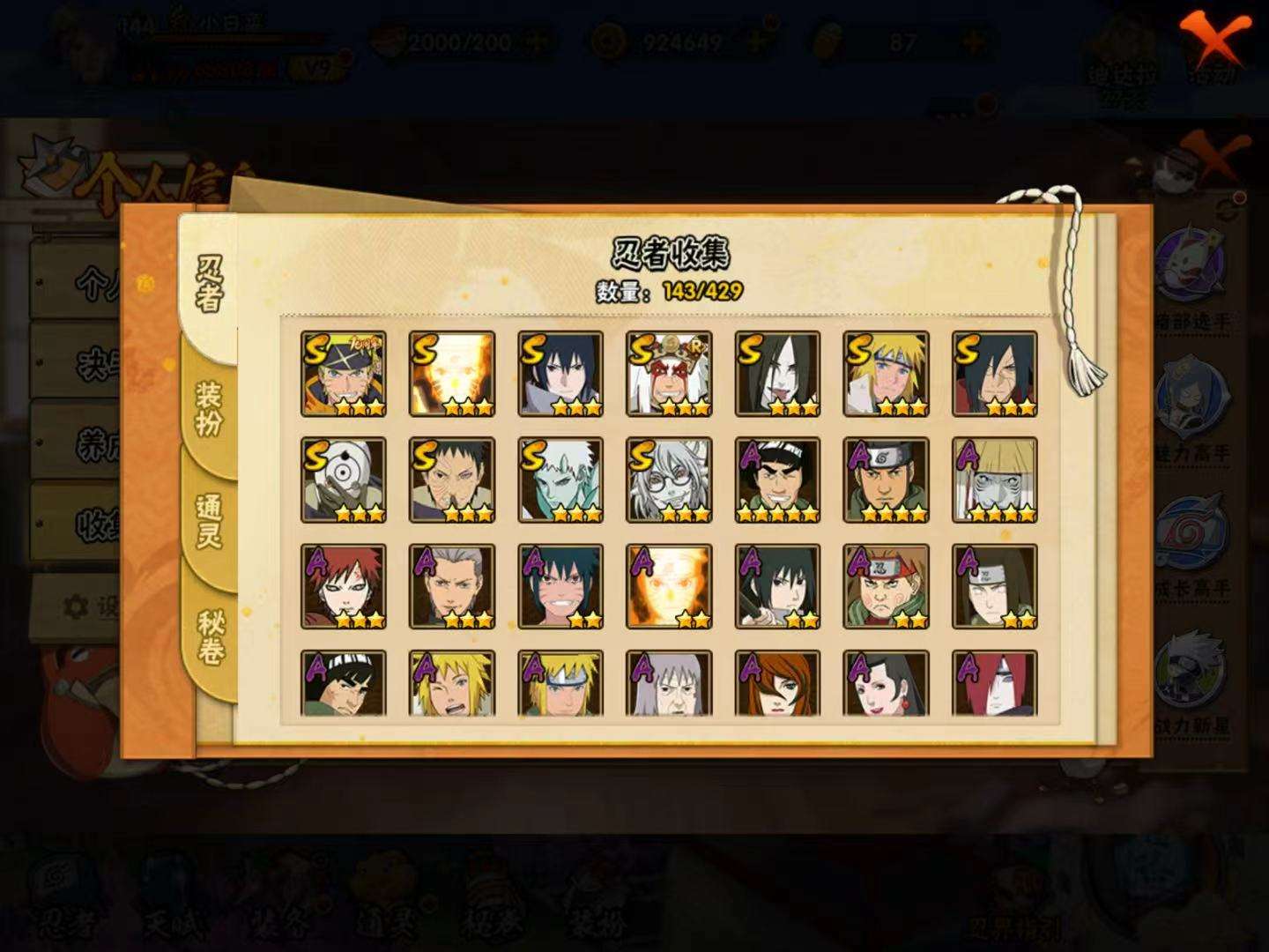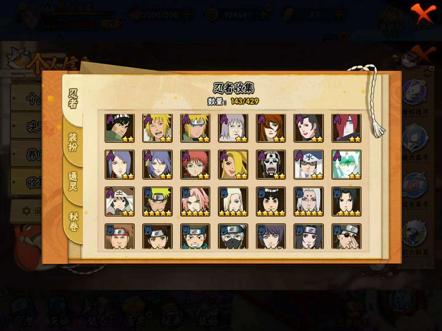 【A级】干柿鬼鲛 小南「神驹佑将」 猿飞阿斯玛 千代「近松十人卫」 宇智波佐助「须佐能乎」 照美冥「五代目水影」 我爱罗「疾风传」 秋道丁次「忍界大战」 蝎 迈特凯 不缘 黑土「四代目土影」