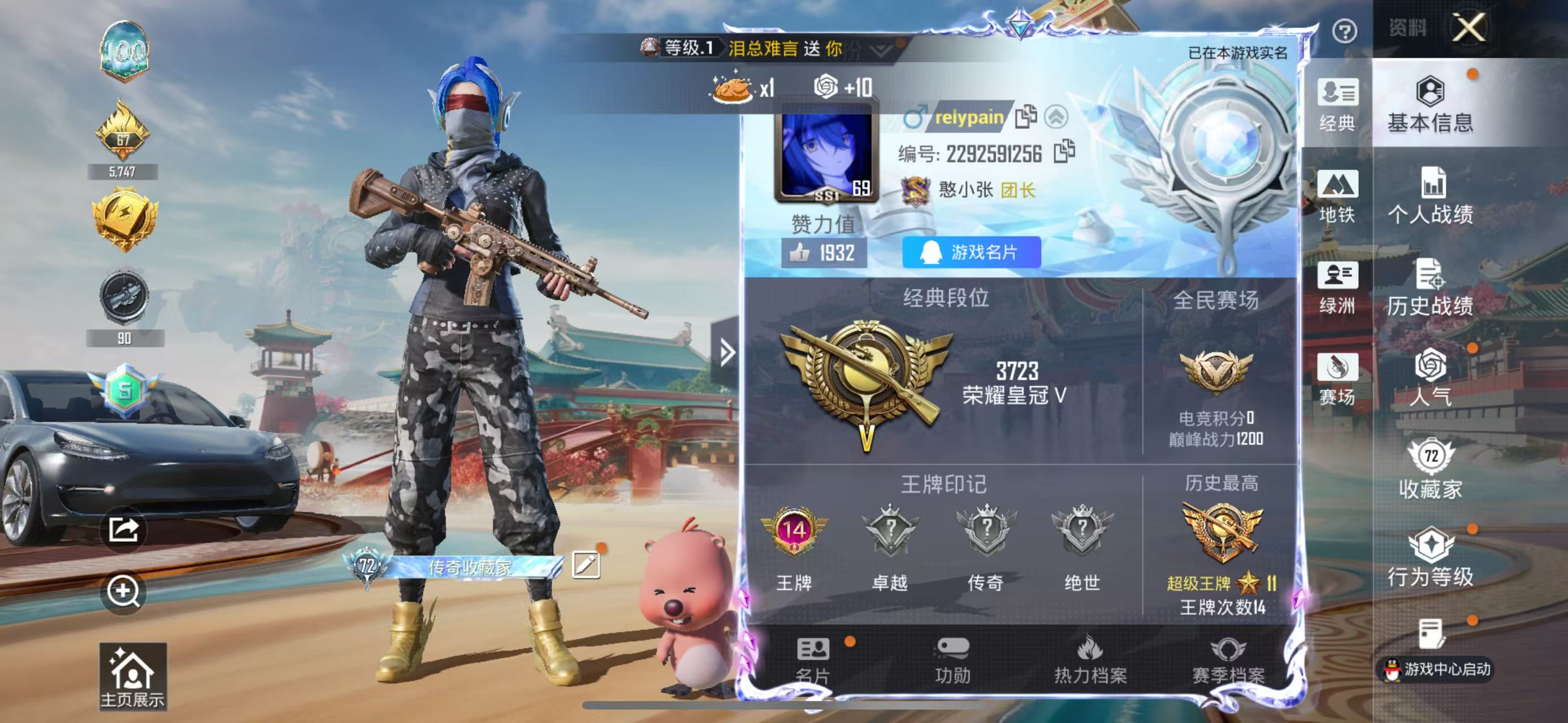 14王牌印记-5粉装-10特效枪-2载具-87766热力值-242套装-290枪皮