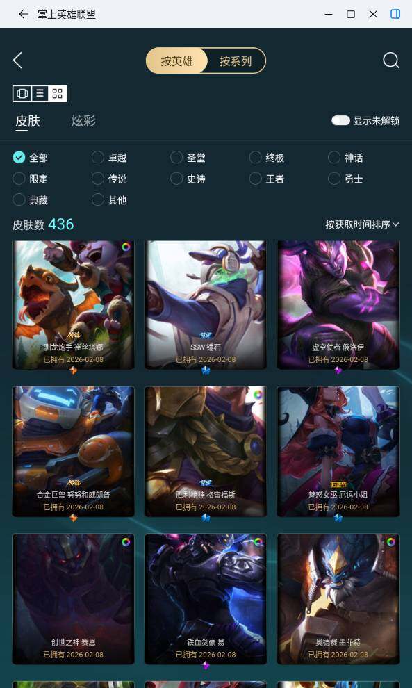 未定级段位-172英雄-436皮肤-221炫彩-0终极-12神话-49限定-43传说-89史诗