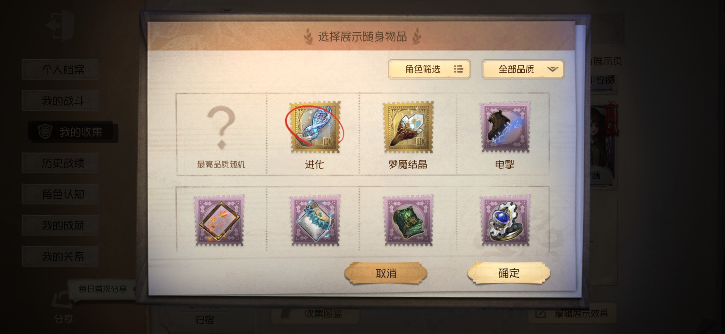 随身物品: