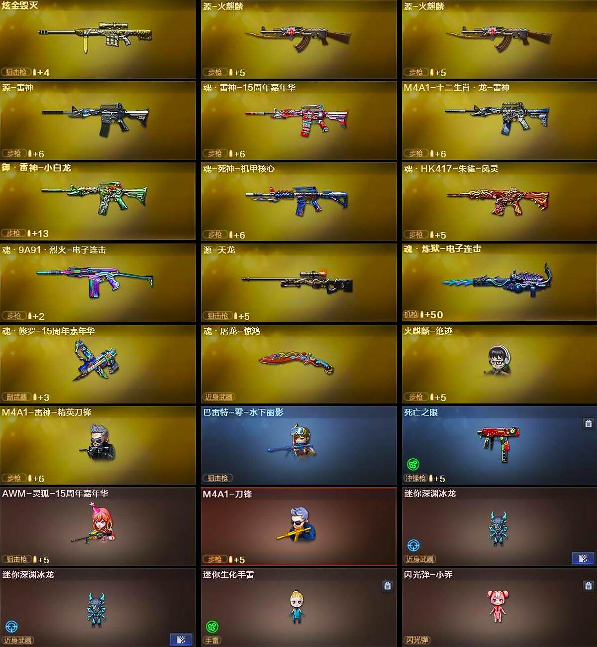 【店主推荐/有二次/秒换绑】5套幻兽套装!多热门枪械皮肤!北京一区-172V-17王者武器数-3炫金武器数【热门武器】:QBZ03-金色蔷薇*2,HK417-朱雀,死亡之眼,M4A1-黑骑士*2,汤姆逊-烈龙*6,RPK-盘龙*6,加特林-炼狱*4,火麒麟-绝迹,COP-堕天神*3,沙鹰-修罗*3,高爆手雷-幻兽*5【王者炫金武器】:王者之幻*2,王者之势,王者之武,王者之光,王者之怒,盘龙-悦心,炼狱-悦蓝*3,王者之魂,炫金无影,炫金武士,炫金毁灭【音效卡】:AK47-火麒麟音效卡,M4A1