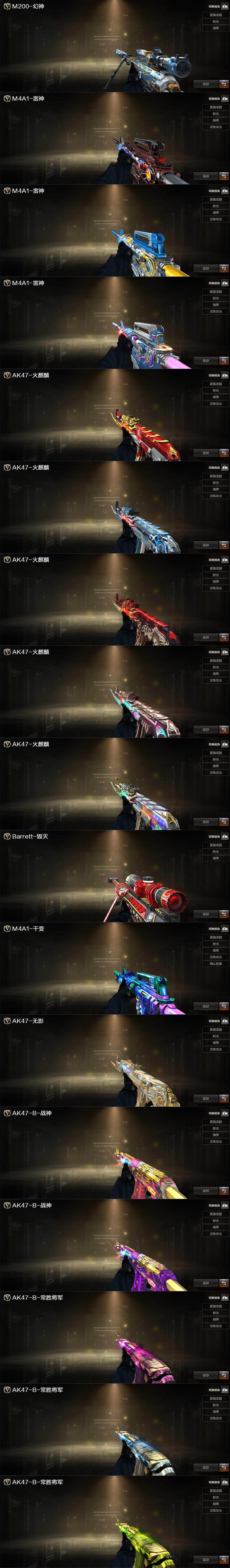 【店主推荐/有二次/秒换绑】幻神三件套!多热门枪械皮肤!山西一区-59V-4王者武器数-1炫金武器数【热门武器】:QBZ03-金色蔷薇,Scar Light-白虎,M200-幻神,白虎-电玩蓝兔,荣耀世冠-柯尔特,M4A1-黑骑士,汤姆逊-烈龙*4,RPK-盘龙,加特林-炼狱,USP-雷暴,沙鹰-修罗*4【王者炫金武器】:高爆手雷-雷霆王者,炫金毁灭【音效卡】:M200-幻神音效卡,AK47-火麒麟音效卡,M4A1-雷神音效卡,M4A1-黑骑士音效卡,Barrett-毁灭音效卡,Barrett-