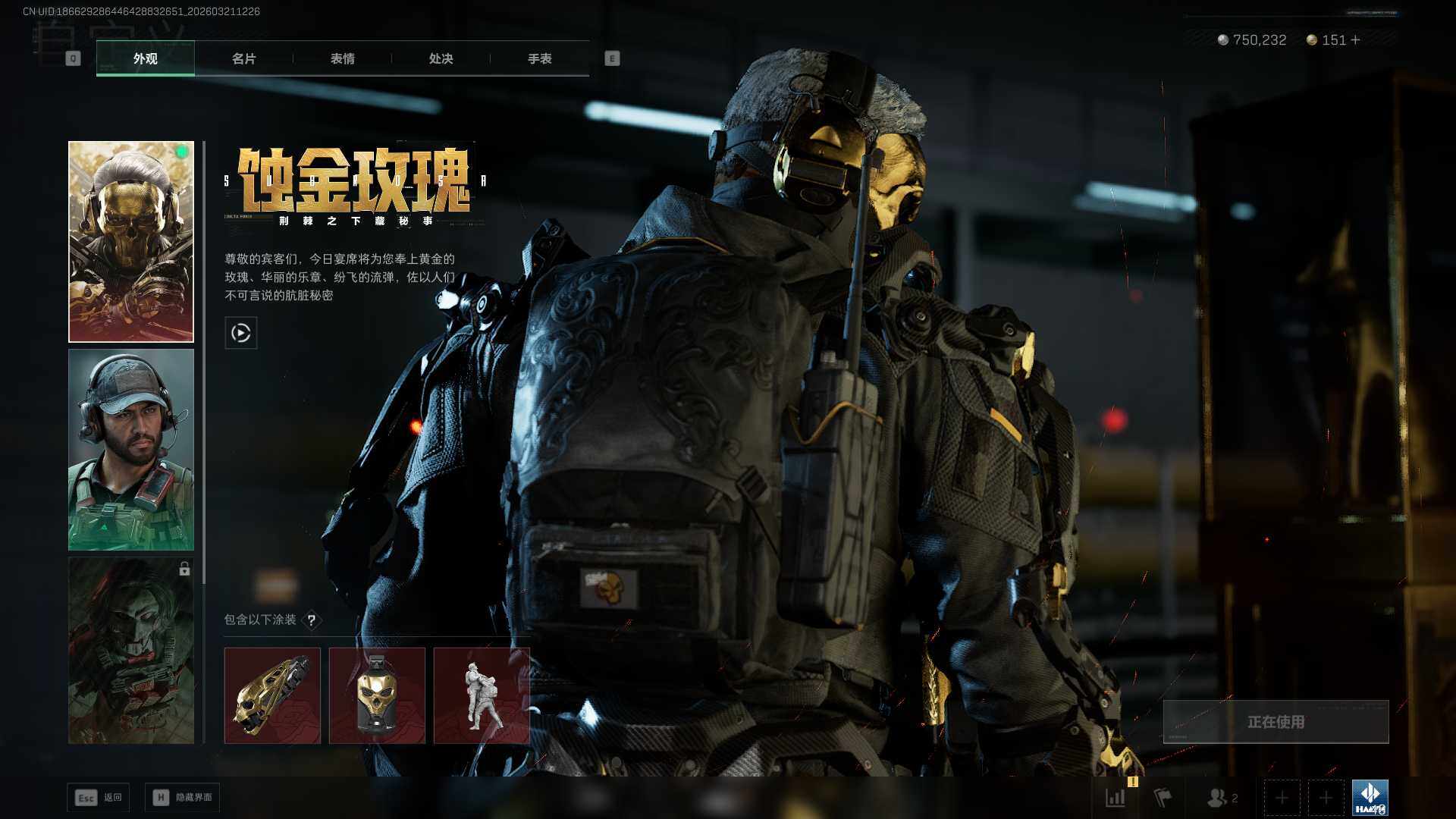 2m总资产-750k哈夫币-49烽火等级-黄金-17战场等级-列兵【干员外观
