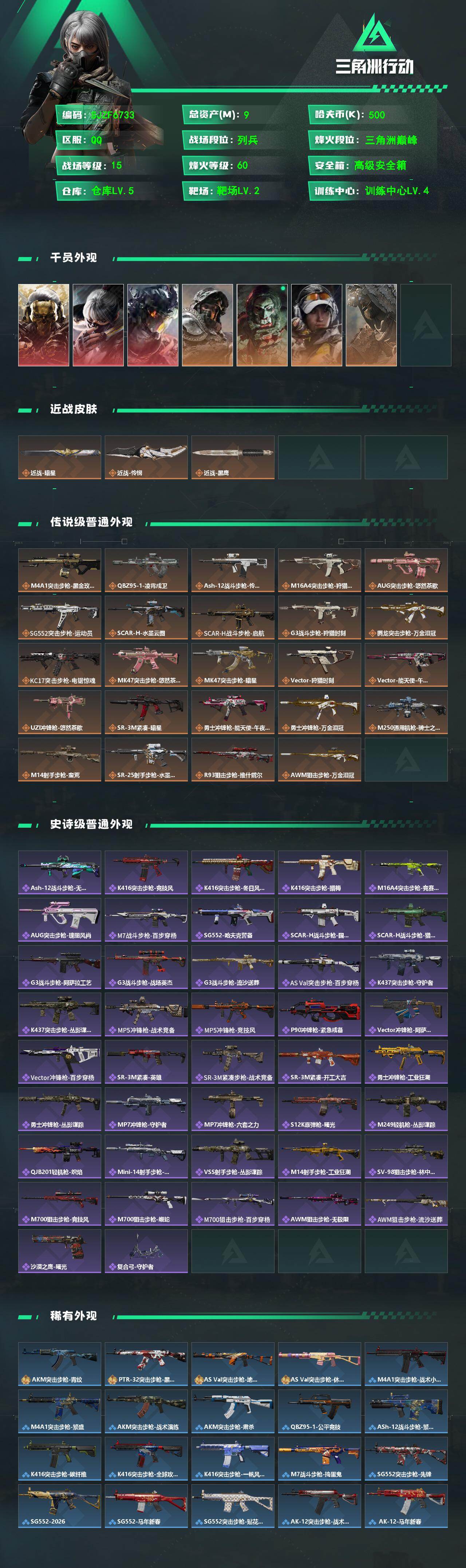 9m总资产-500k哈夫币-60烽火等级-三角洲巅峰-15战场等级-列兵