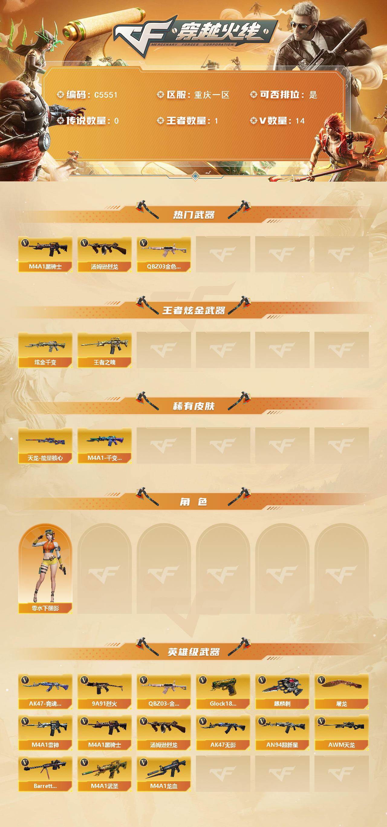 重庆一区-15V-1王者武器数-1炫金武器数