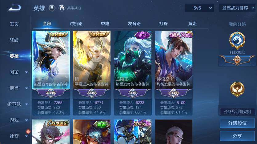 贵族-7-贵族积分48173-打野38段-227皮-2典藏-8传说-猪八戒全皮