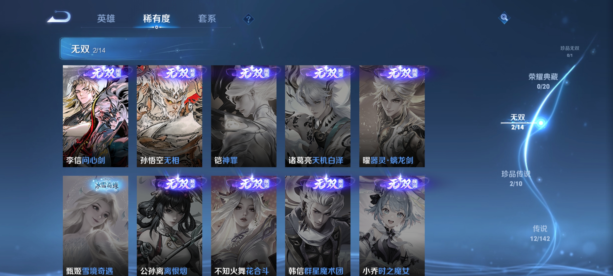 金标李信2无双2珍品262皮肤12传说1星元 -126英雄