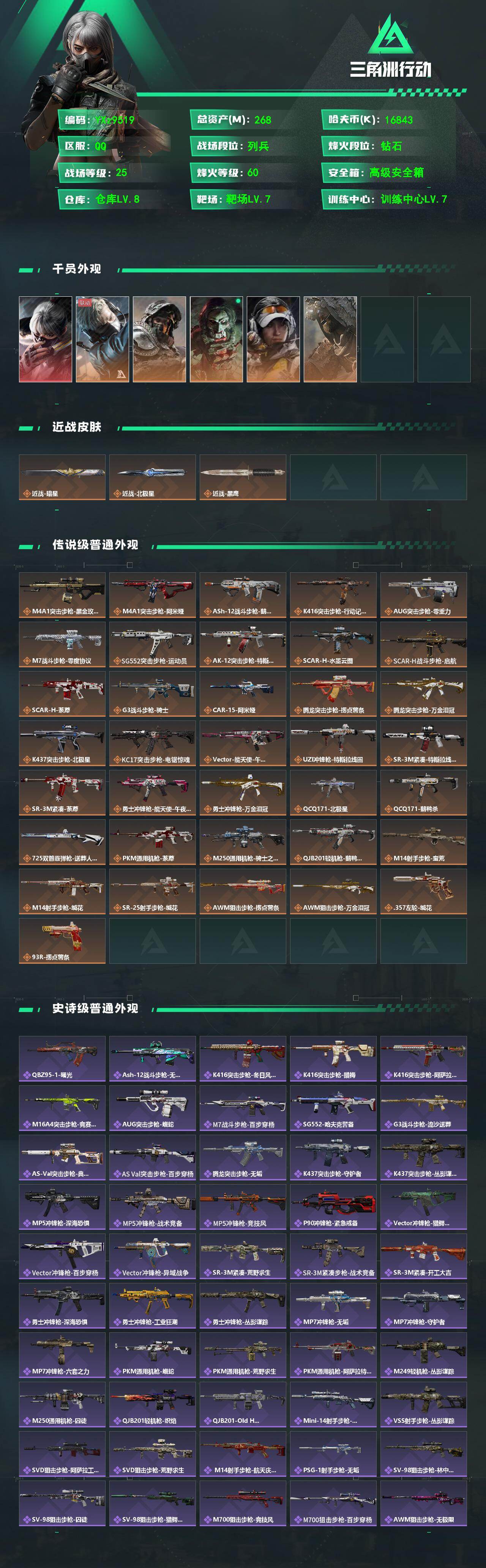 【热门皮肤搭配:单红皮+双刀皮-水墨云图+暗星+北极星.中额资产268M】【Q区三端互通】【可二次】YXz9519-特勤处:仓库8级/靶场7级/训练中心7级-总资产268m-哈夫币1684w-烽火等级:60级