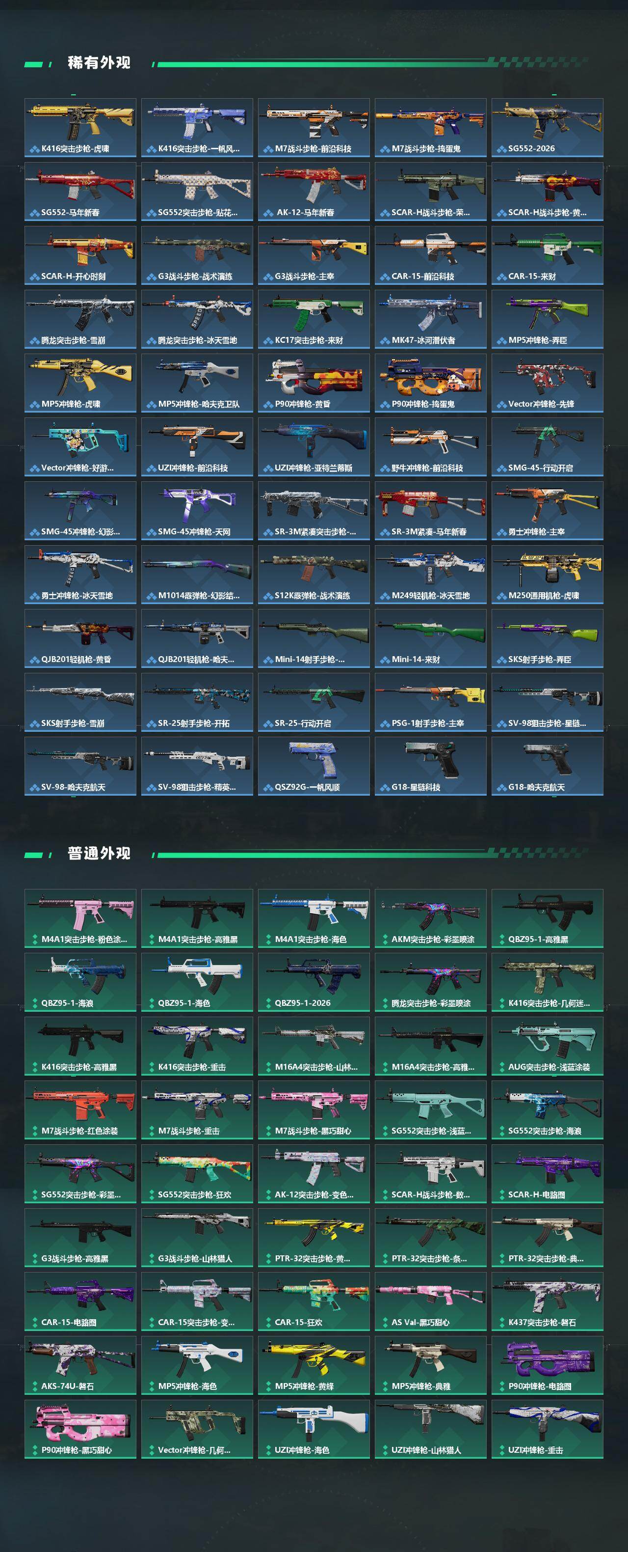 【传说外观】:M4A1突击步枪-阿米娅,QBZ95-1突击步枪-凌霄戍卫,ASh-12战斗步枪-鹅鸭杀