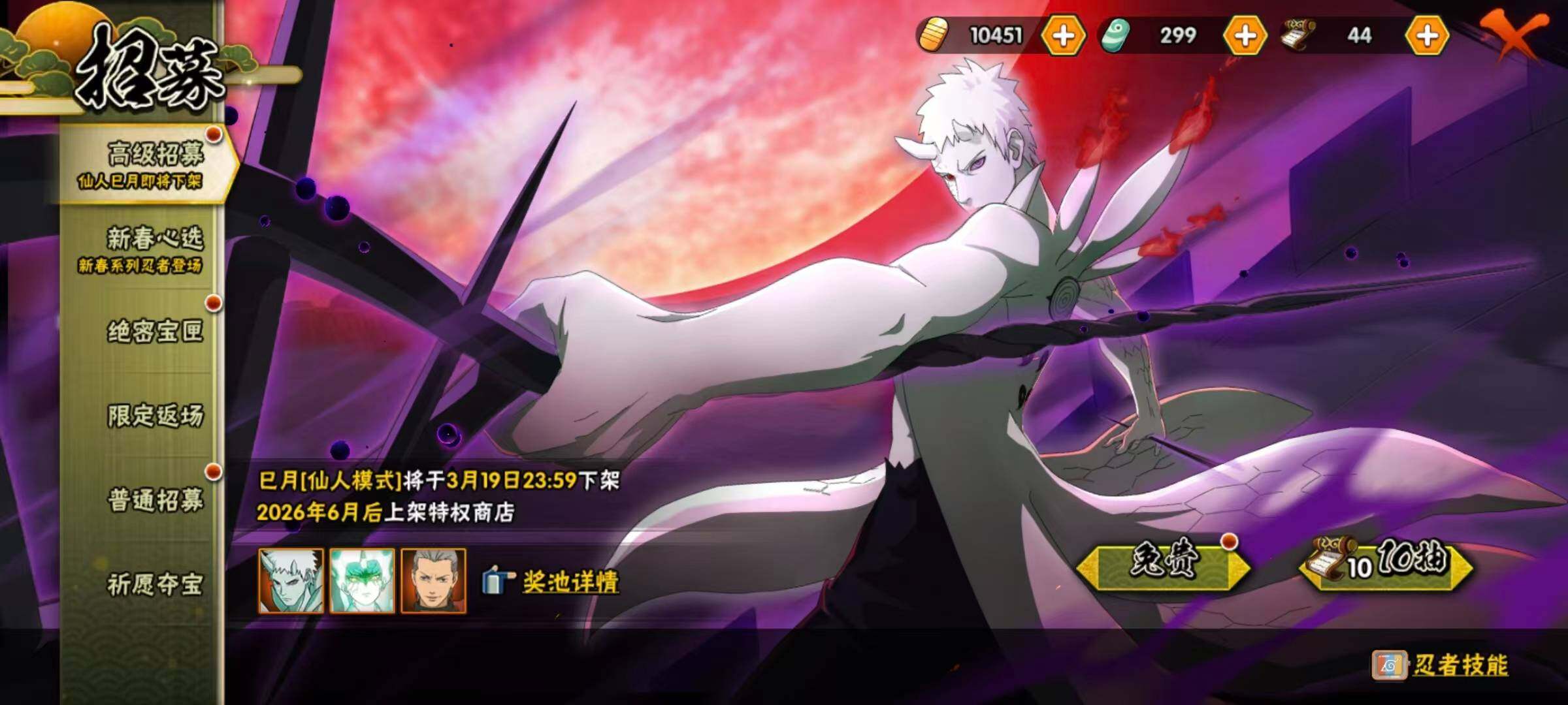 侠隐佐助+雪山主场景,1w金币,44高招券