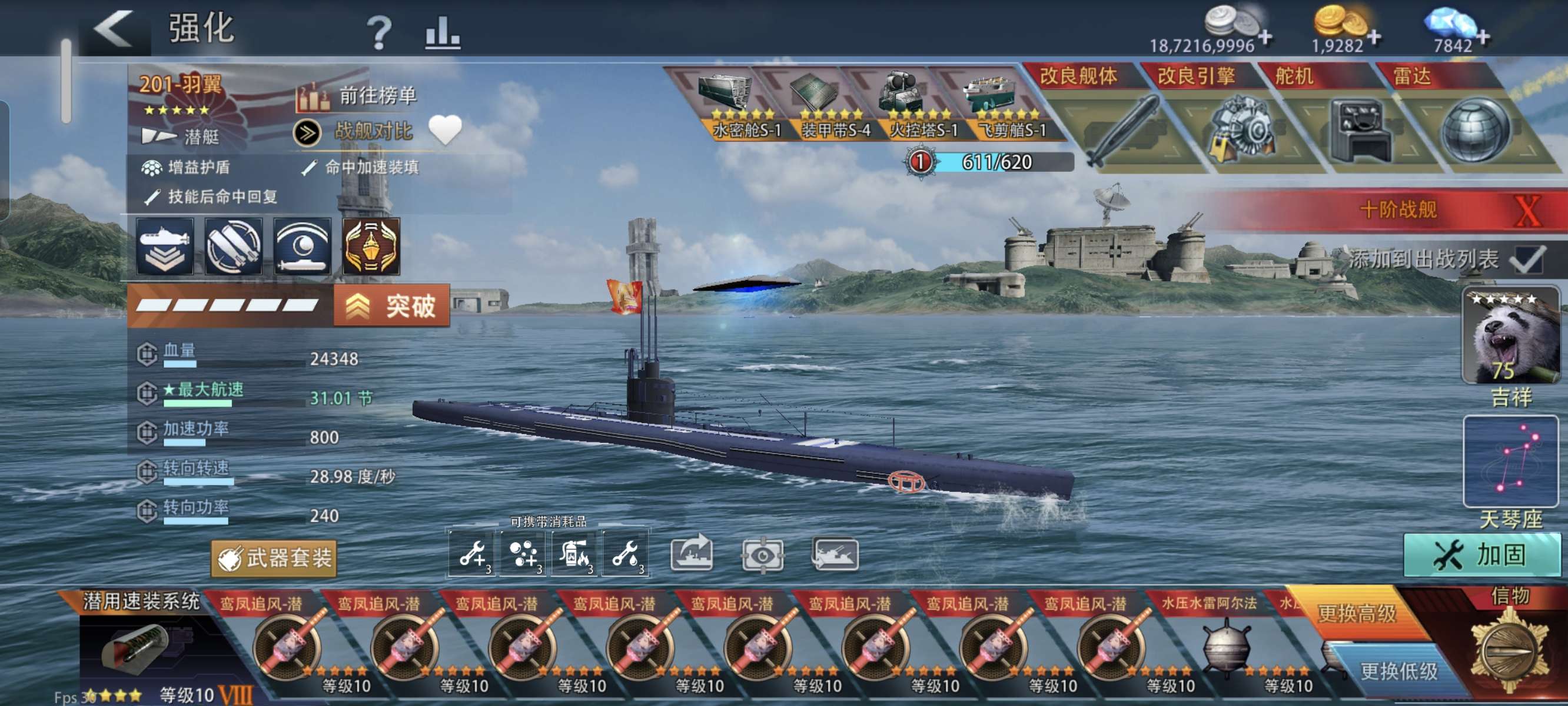 安卓官服 顶级铸造普林201-羽翼潜艇 五星大熊猫 满级天琴 天梯轻松松松六七十万 部件一般 都可