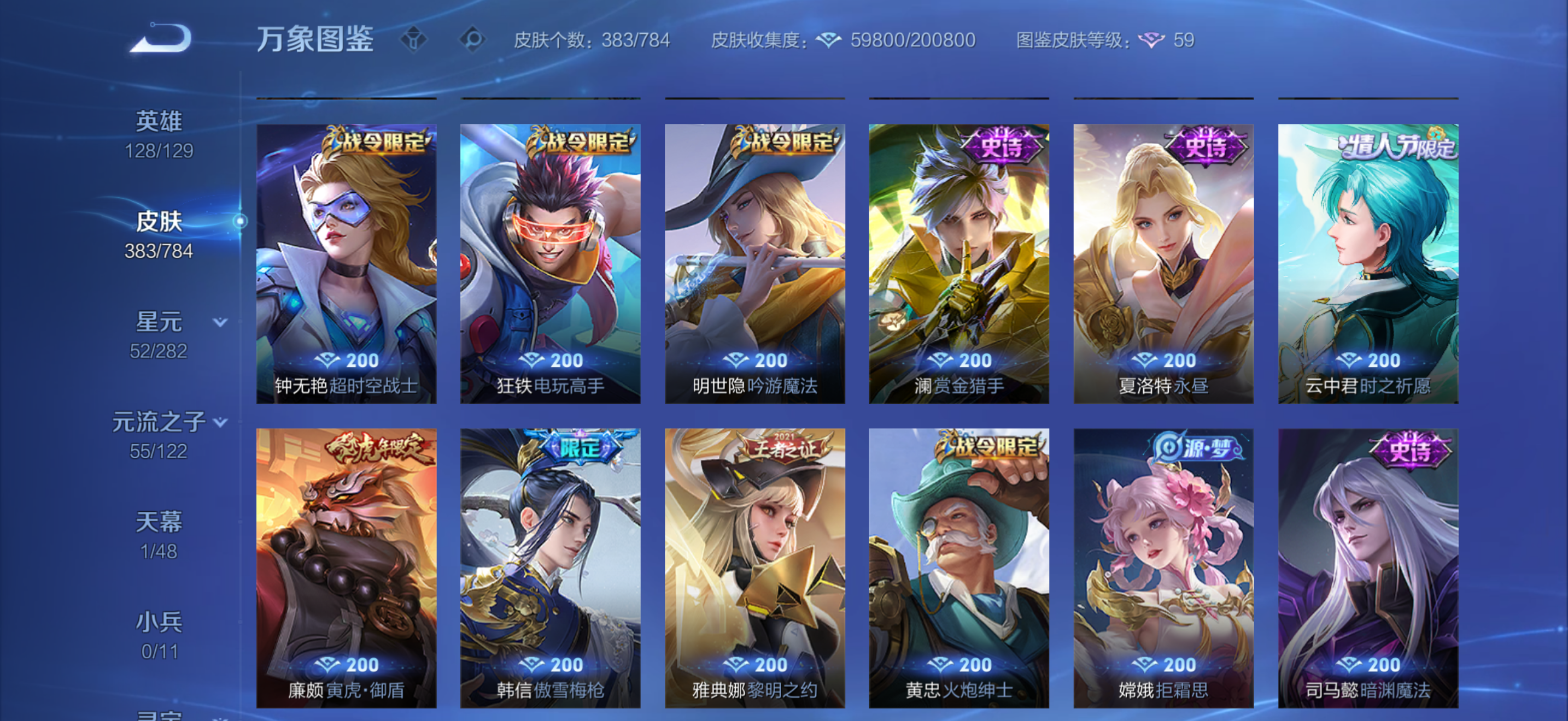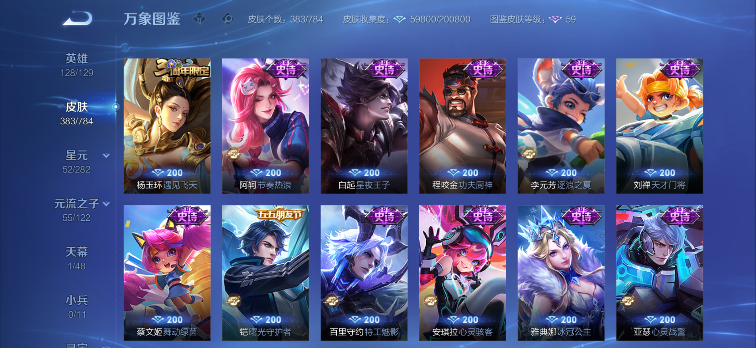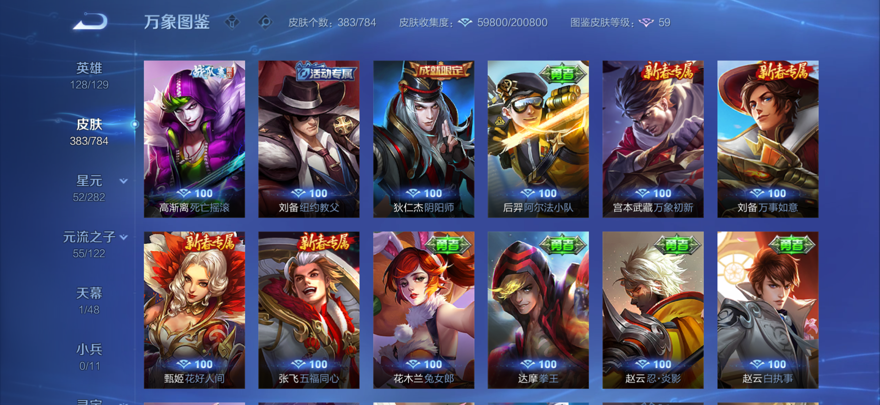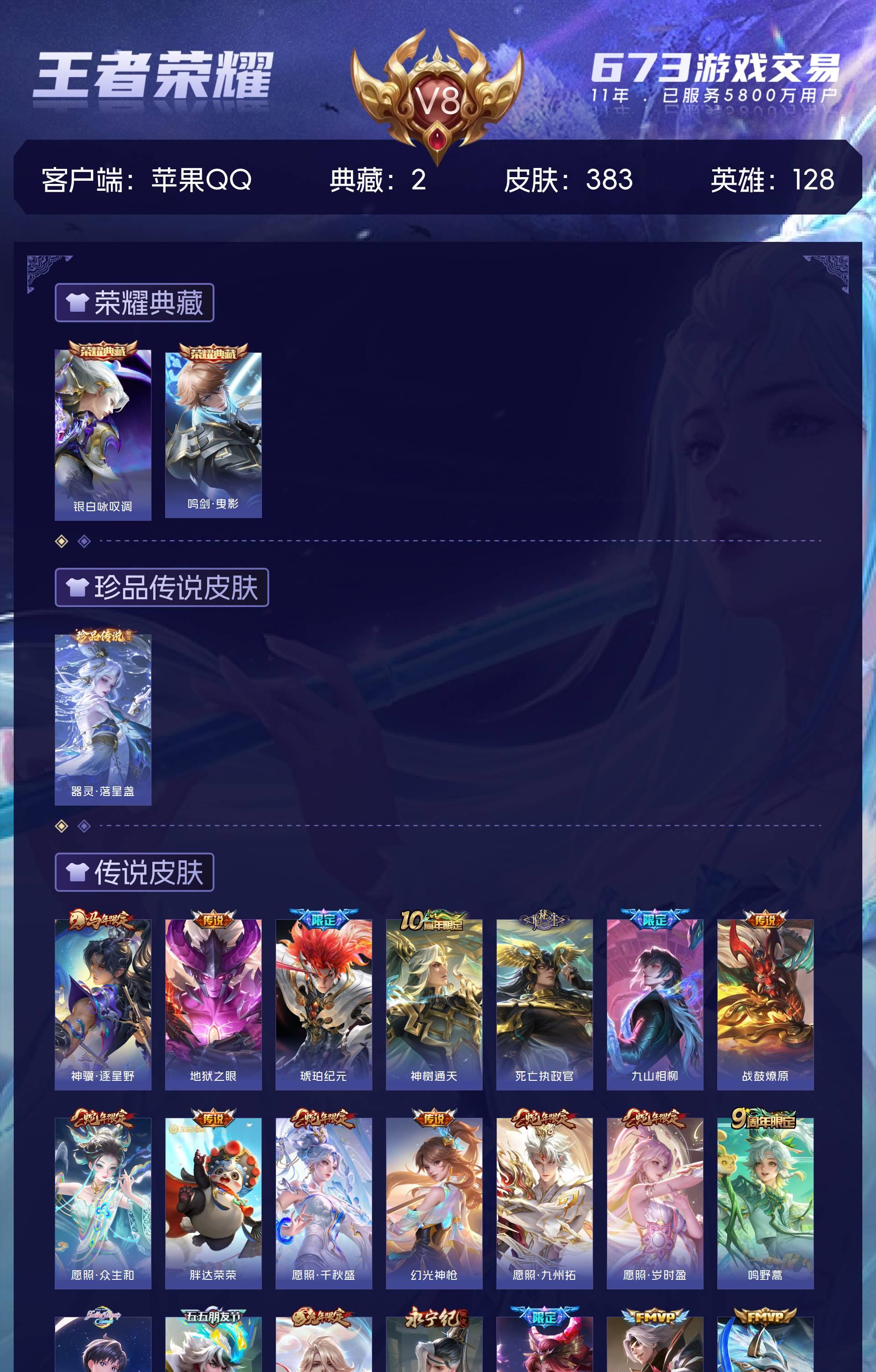 V8 皮肤383 英雄128 至尊星耀 荣耀典藏2 珍品传说1 传说31