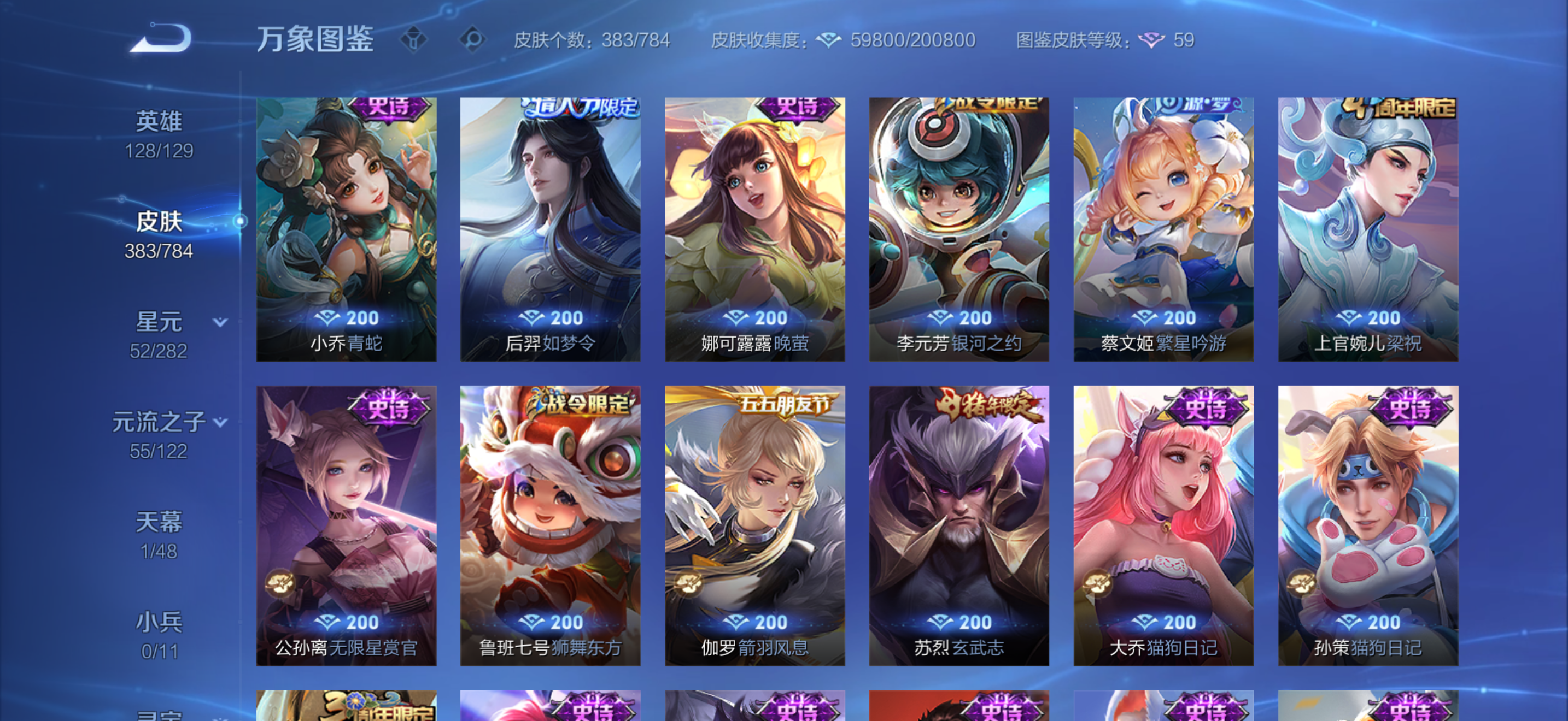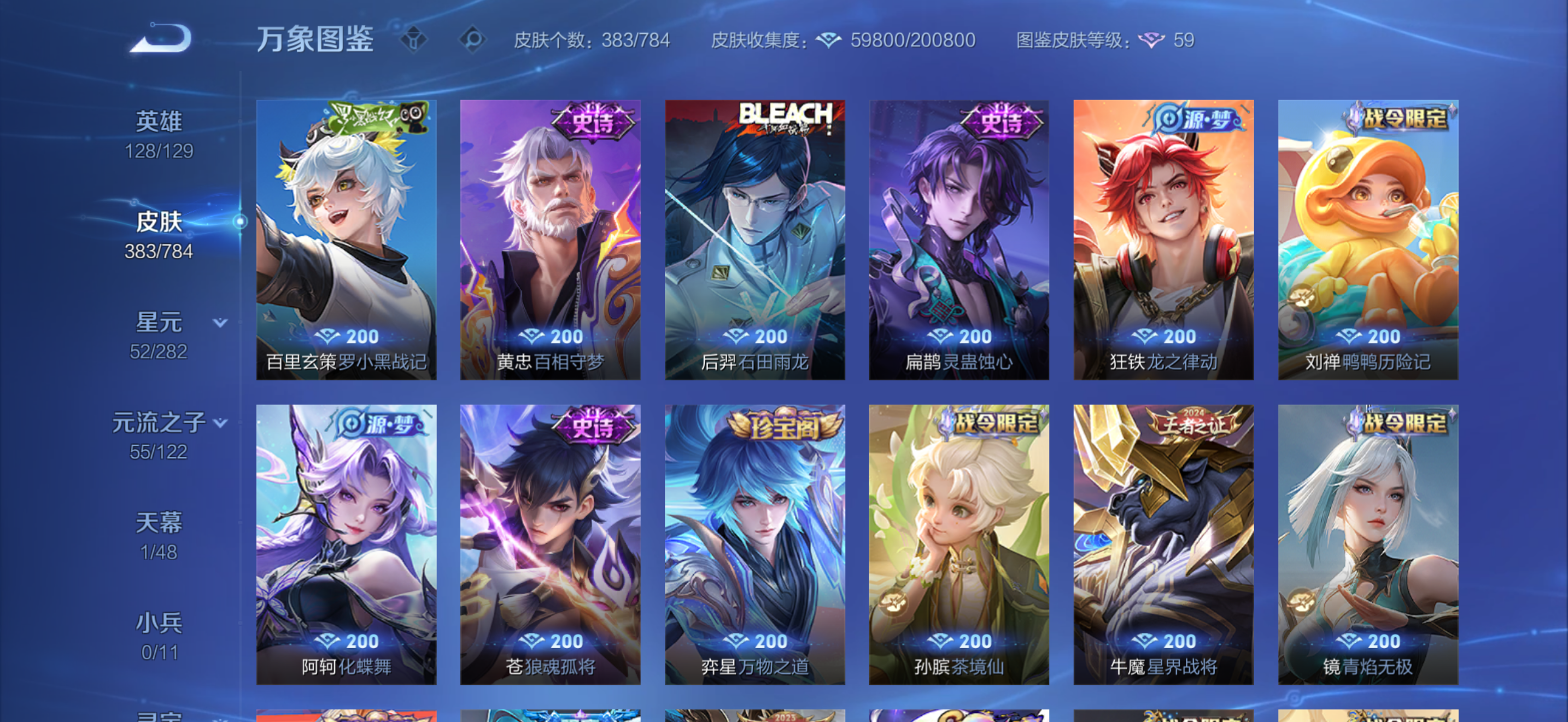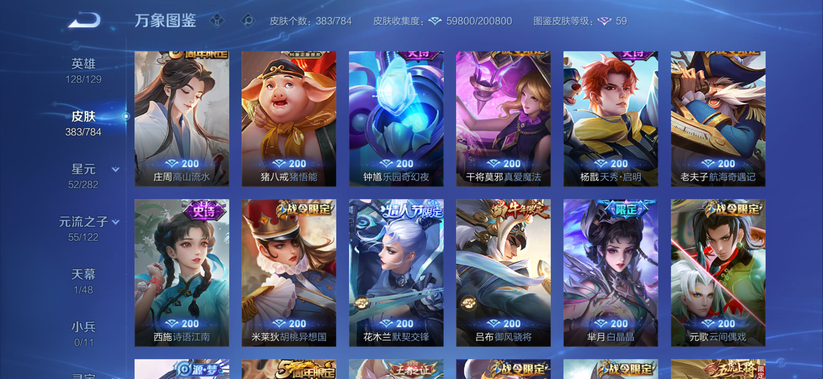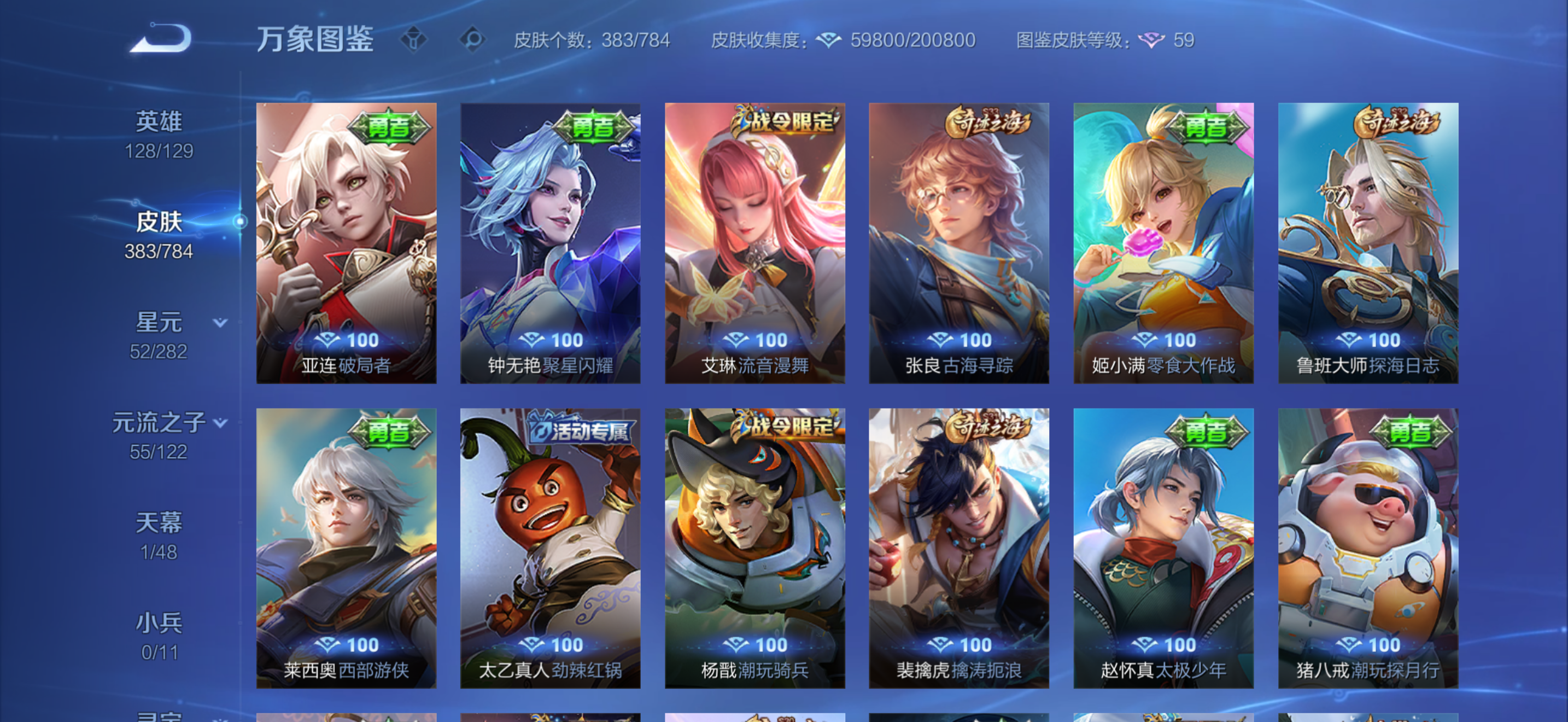 V8 皮肤383 英雄128 至尊星耀 荣耀典藏2 珍品传说1 传说31