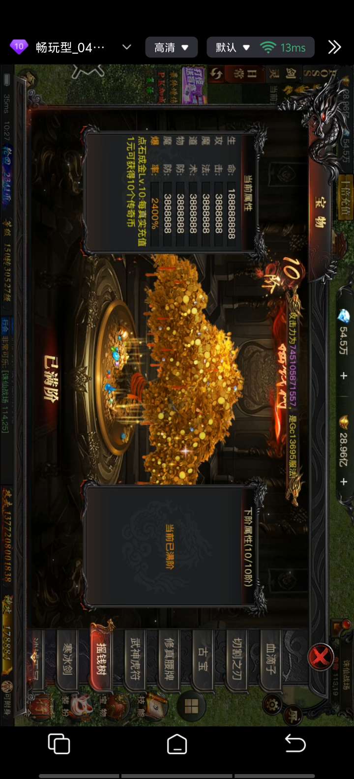 满屠龙,区里第一。跨服前三。跨服充值最高。拿过去开通神魔双修马上就跨服榜一。特权全部开完。不兴砍价。