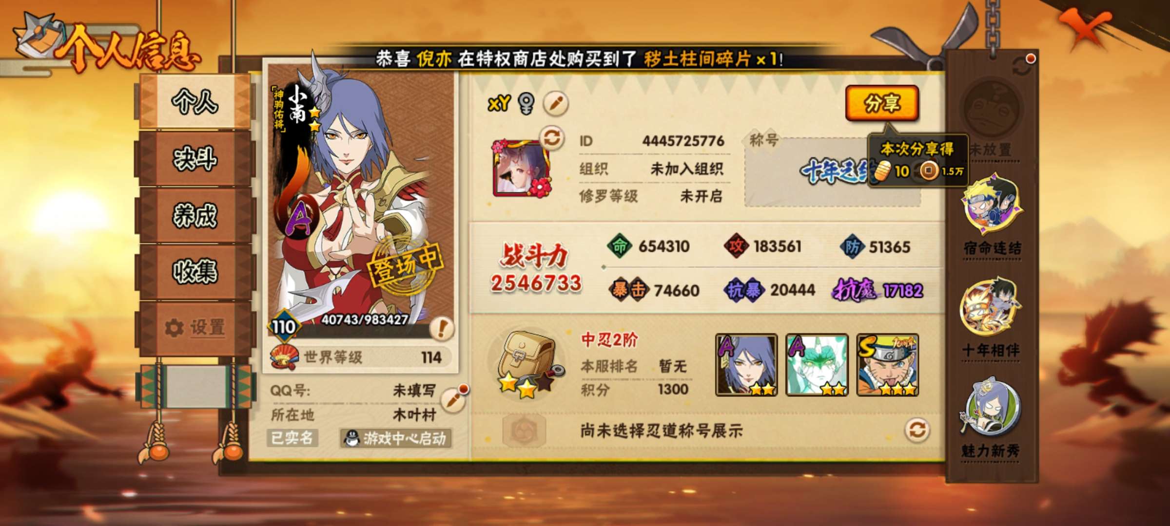 没有防沉迷,可以改实名认证,另一个区也有几个忍者