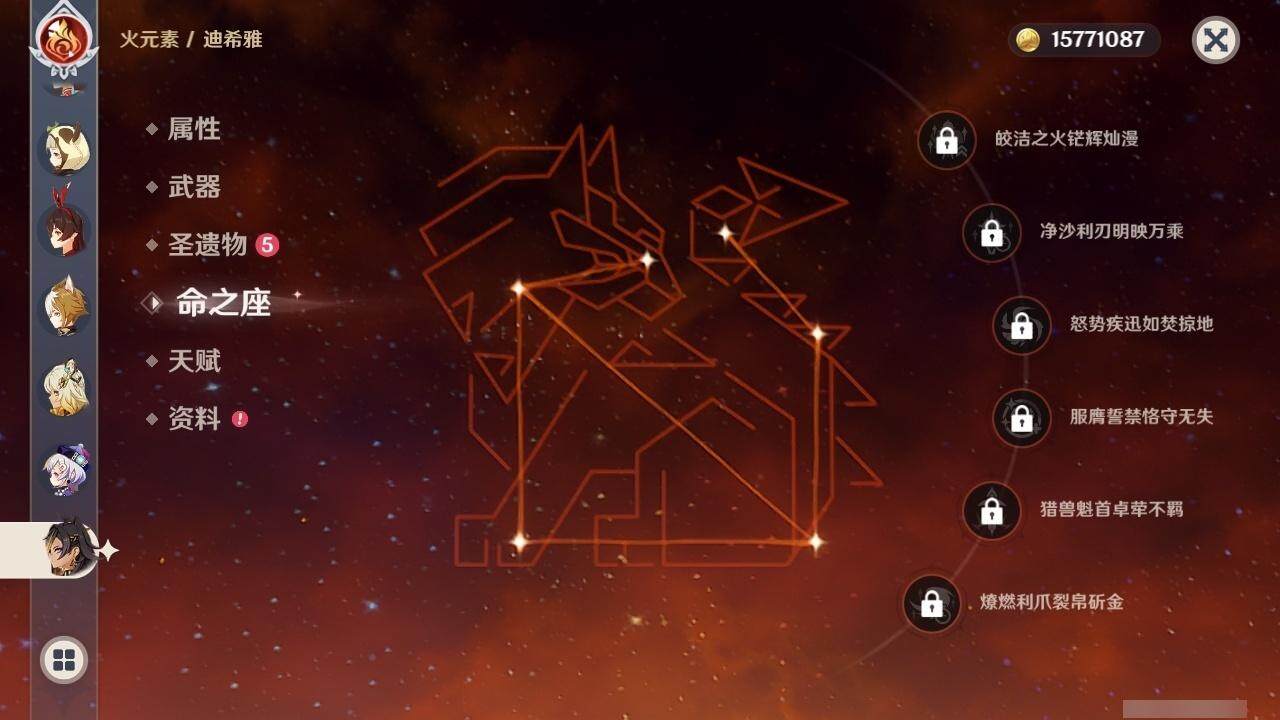 59级/36黄/男主/22个五星角色/8个五星武器0命克洛琳德,0命迪希雅,