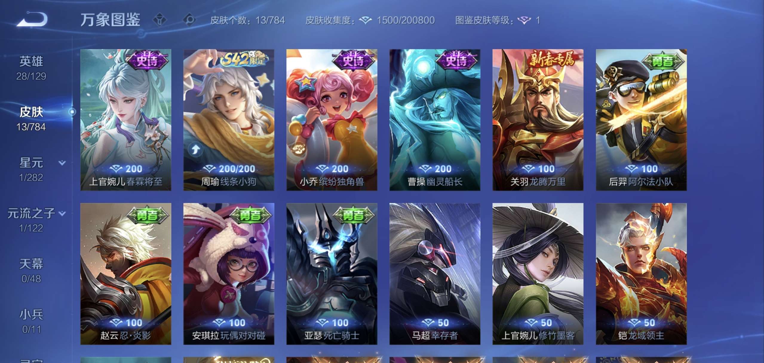 法师号,有一个韩信的街头霸王,还有50多张皮肤碎片