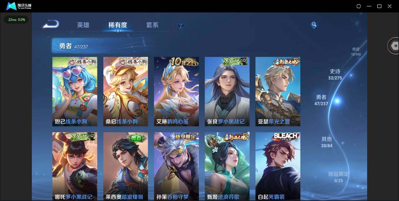 实名: 可修改 贵族等级: V7 英雄数: 125 皮肤数: 111 星传说: