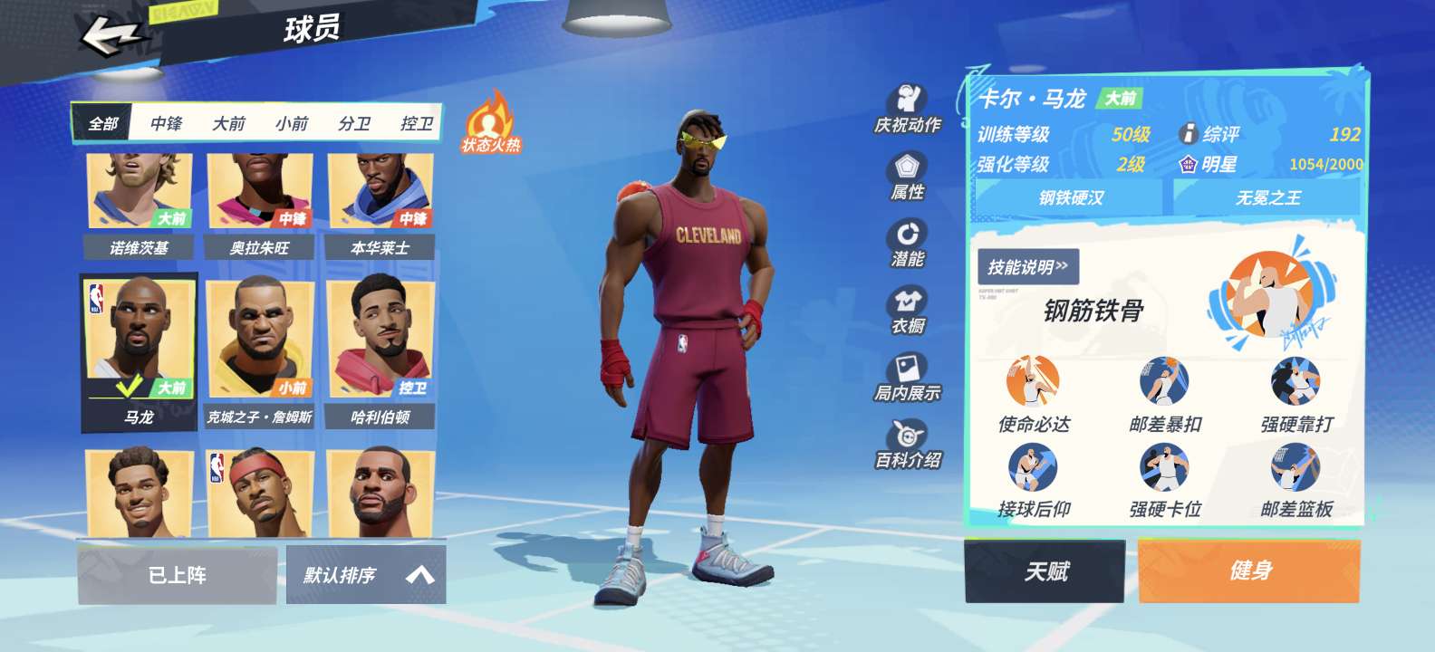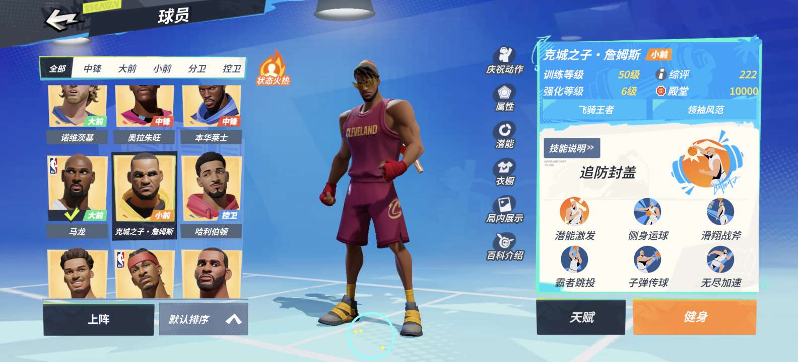 满突克詹,2突马龙,送老詹,文班,大本,司机,哈利。4突特纳