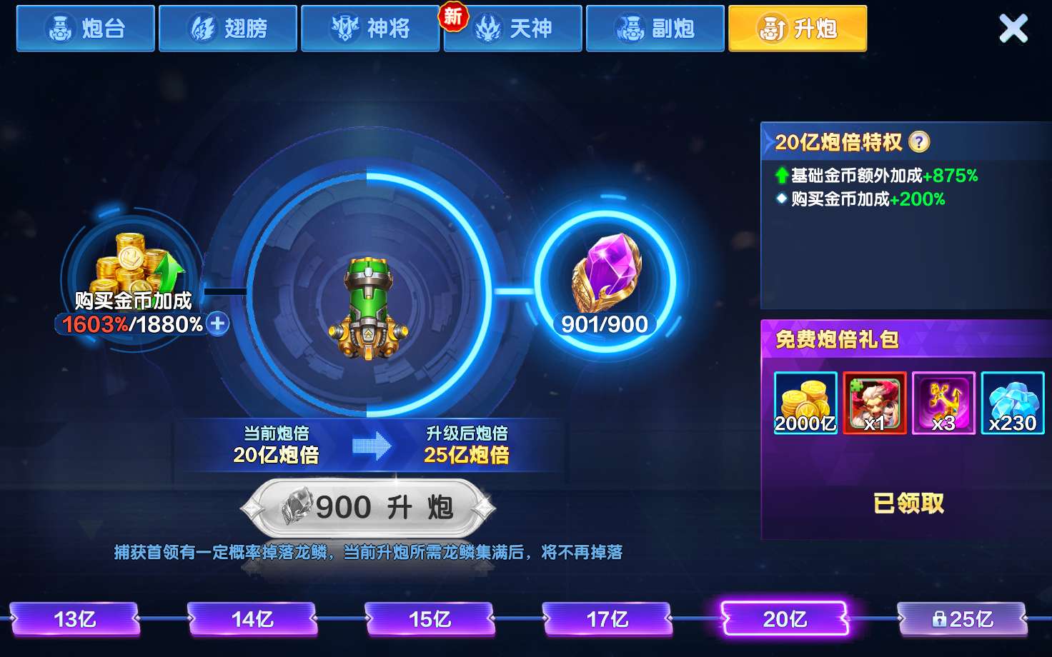 小氪12块必下鱼买那个锦鲤礼包爆发还行,天神十几个,副炮一个