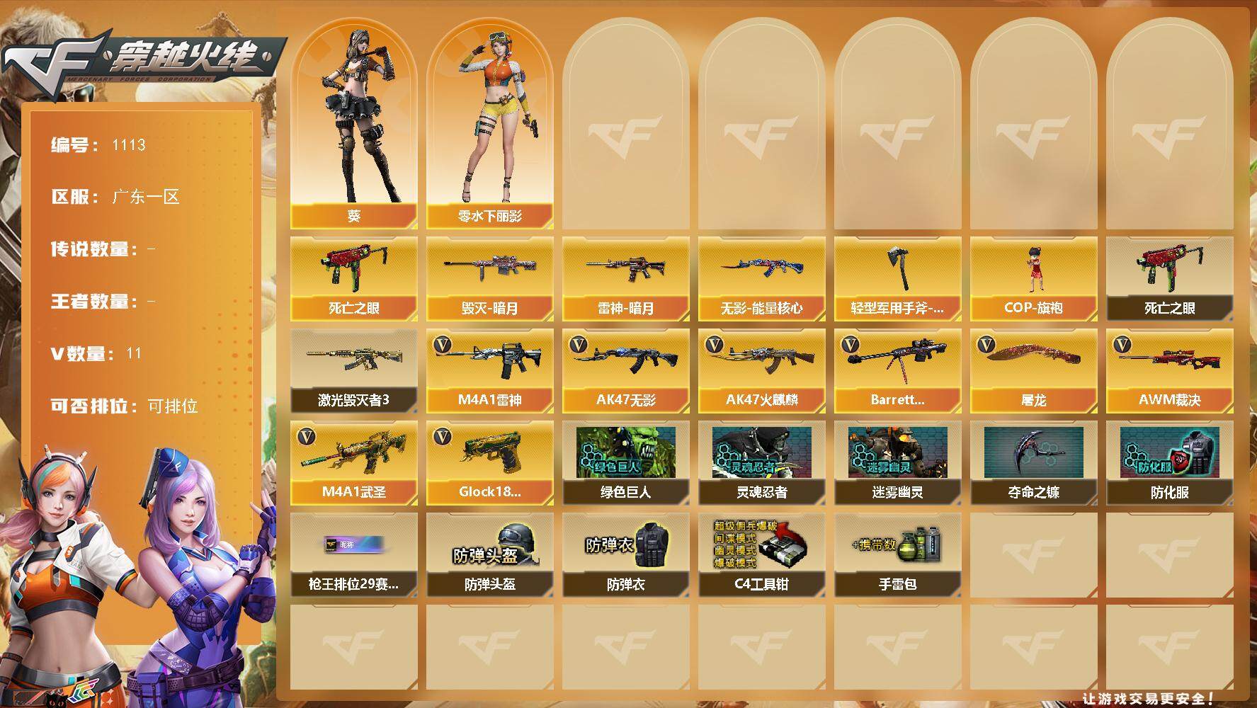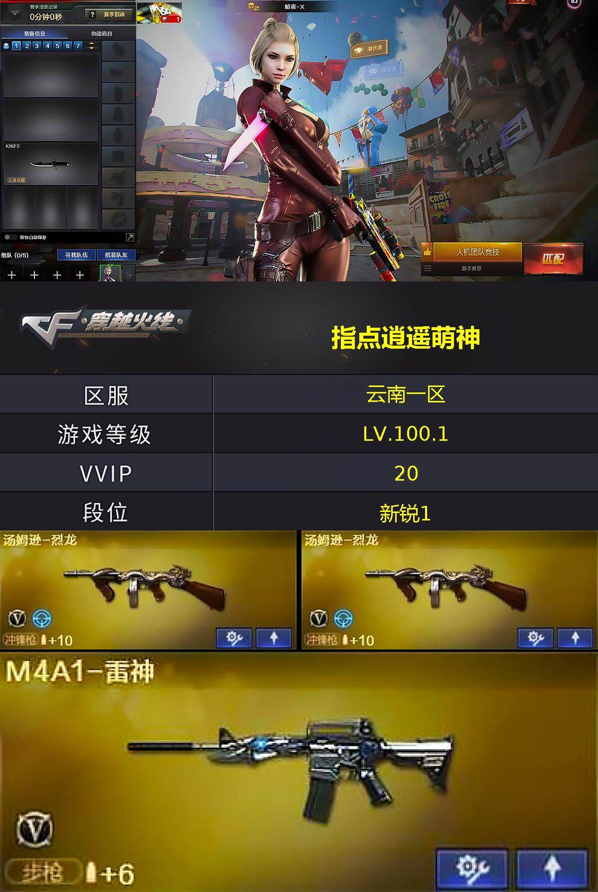 云南一区-20V-0王者武器数-0炫金武器数【热门武器】:汤姆逊-烈龙*2,