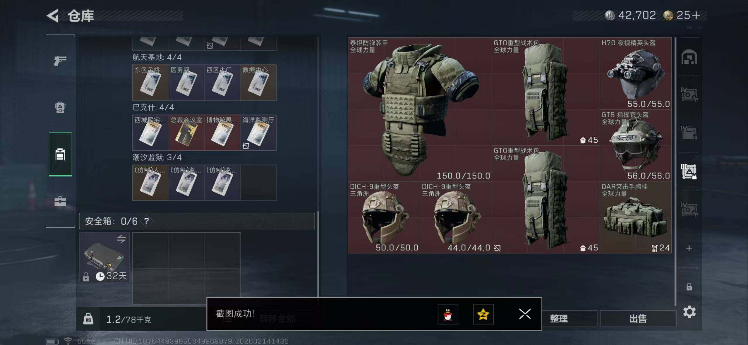 【SJ1391】等级:60 总资产:63.9M 哈夫币:276.1W 近战武器:近战武器-信条,近战武器-暗星,近战武器-处刑者 干员皮肤:电锯惊魂,金牌射手,不破誓约 典藏外观:腾龙突击步枪-气象感应 安全箱:高级安全箱6(2x3)