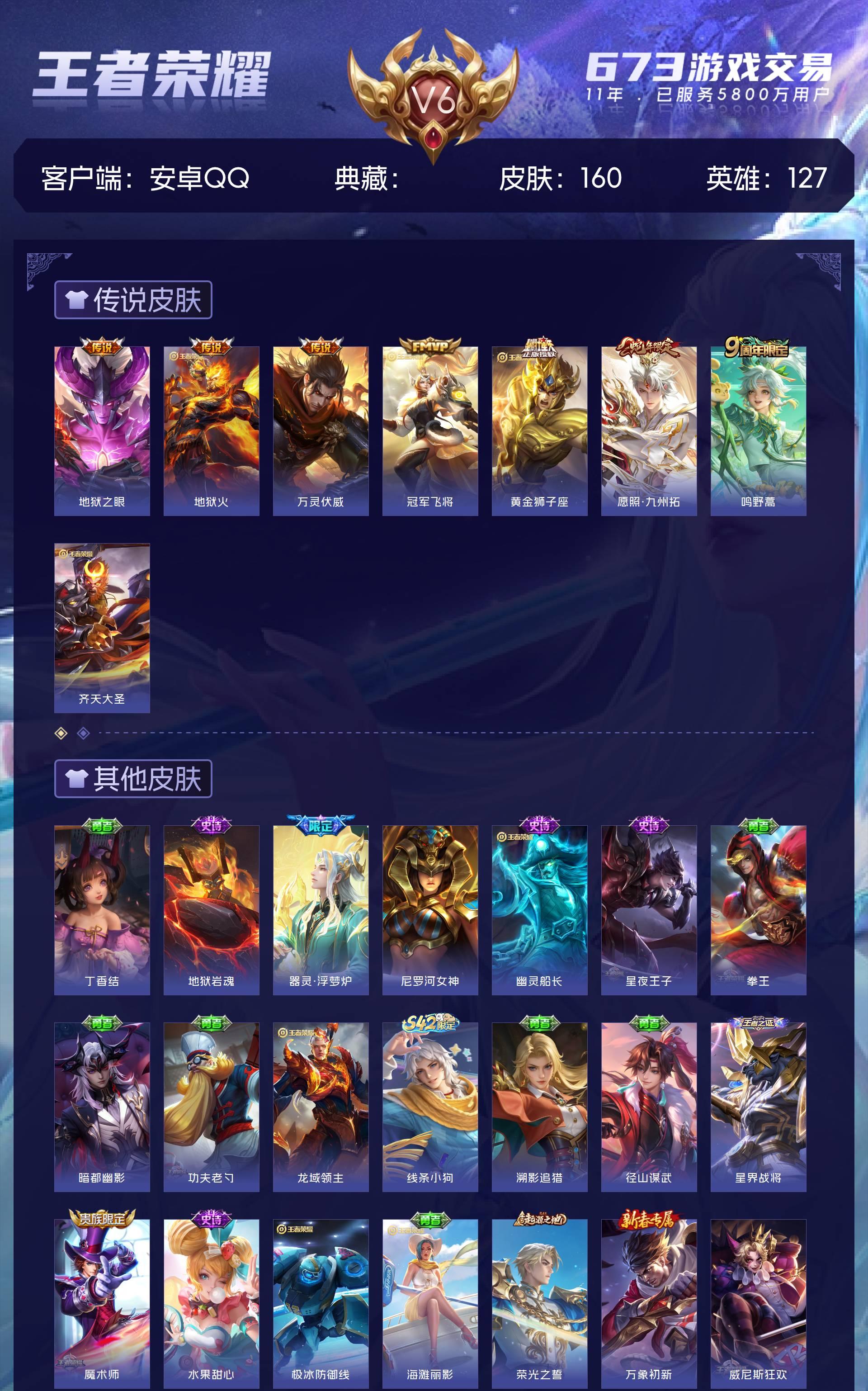 V6 皮肤160 英雄127 荣耀王者 星传说1 传说8
