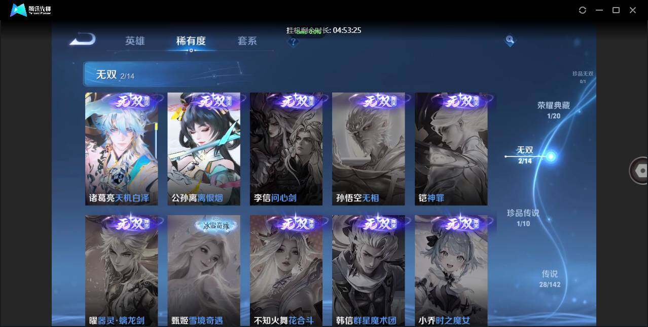 【W6284】亮点:9.8k场次-打野53段-离恨烟.天机白泽.16个性按键.