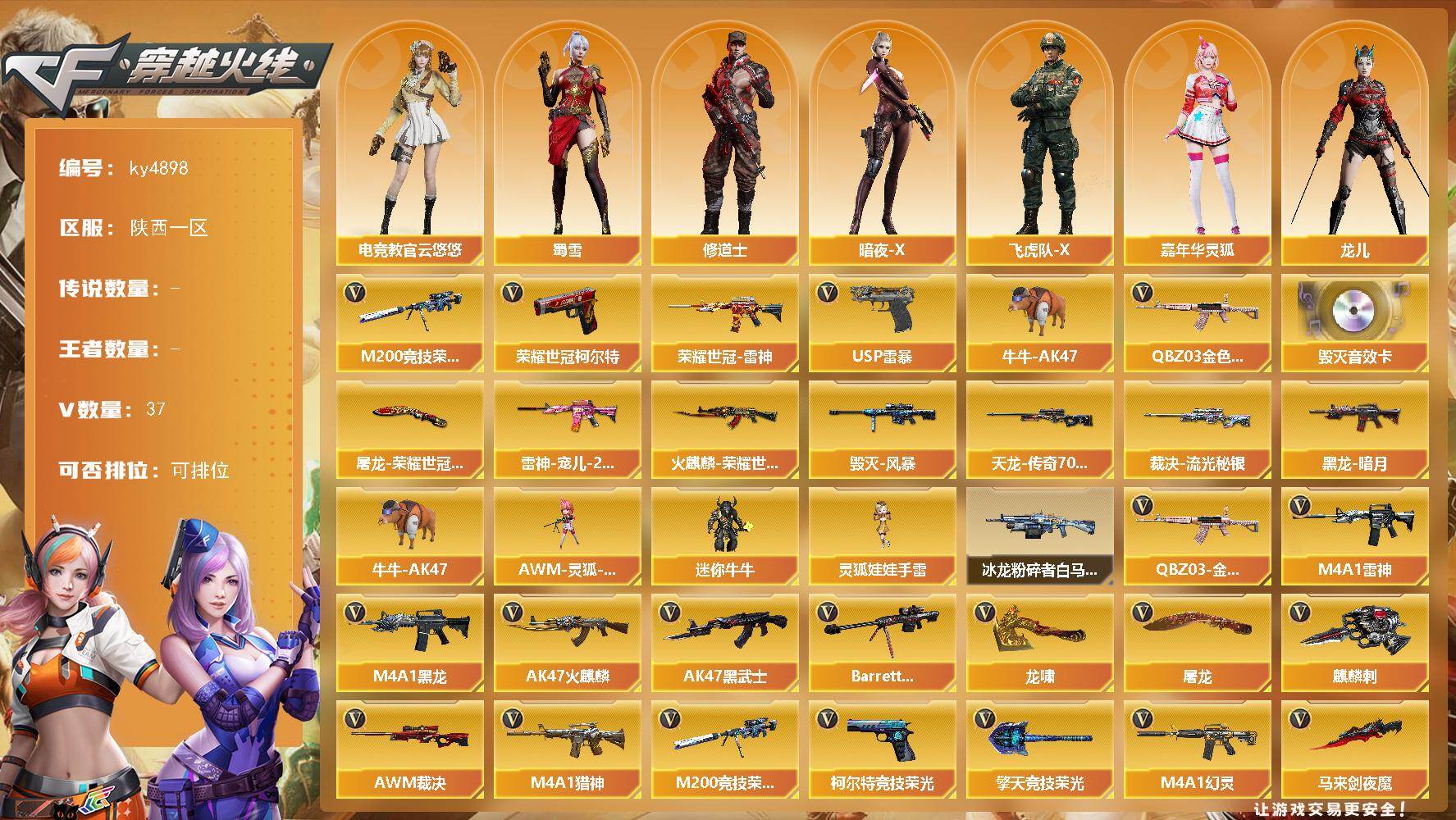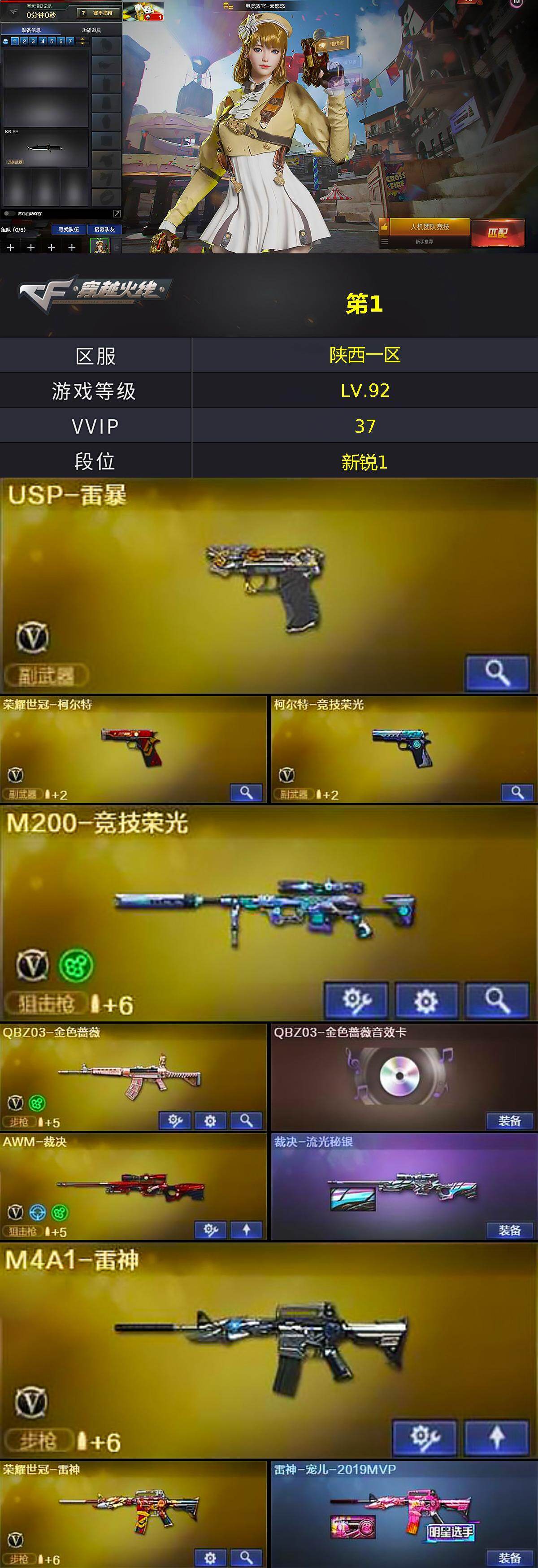 陕西一区-37V-0王者-0炫金【热门武器】:QBZ03-金色蔷薇,M200