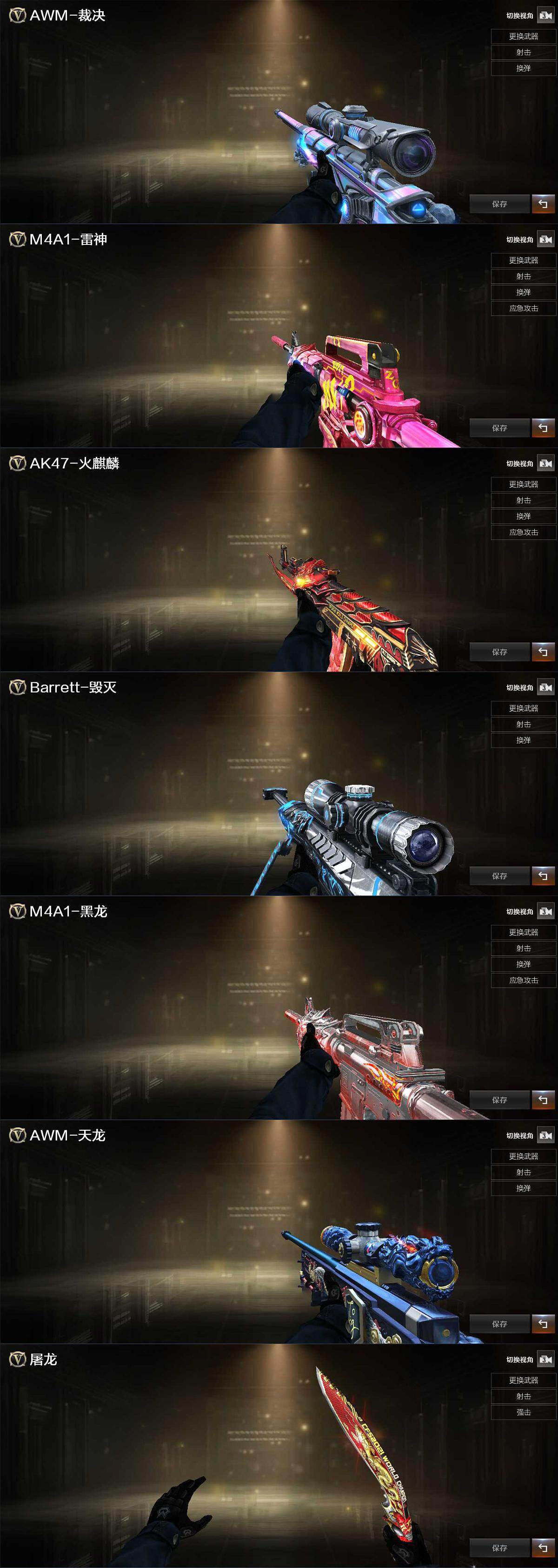 【热门武器】:QBZ03-金色蔷薇,M200-竞技荣光,荣耀世冠-雷神,荣耀世冠-柯尔特,牛牛-AK47,USP-雷暴