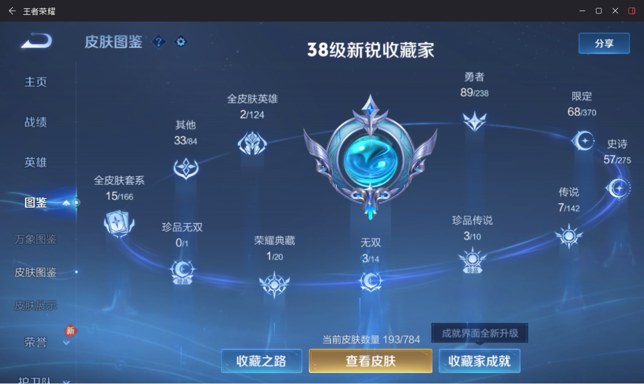 3无双!黑崎套!大耳狗!皮肤数量193印记总数14V7最强王