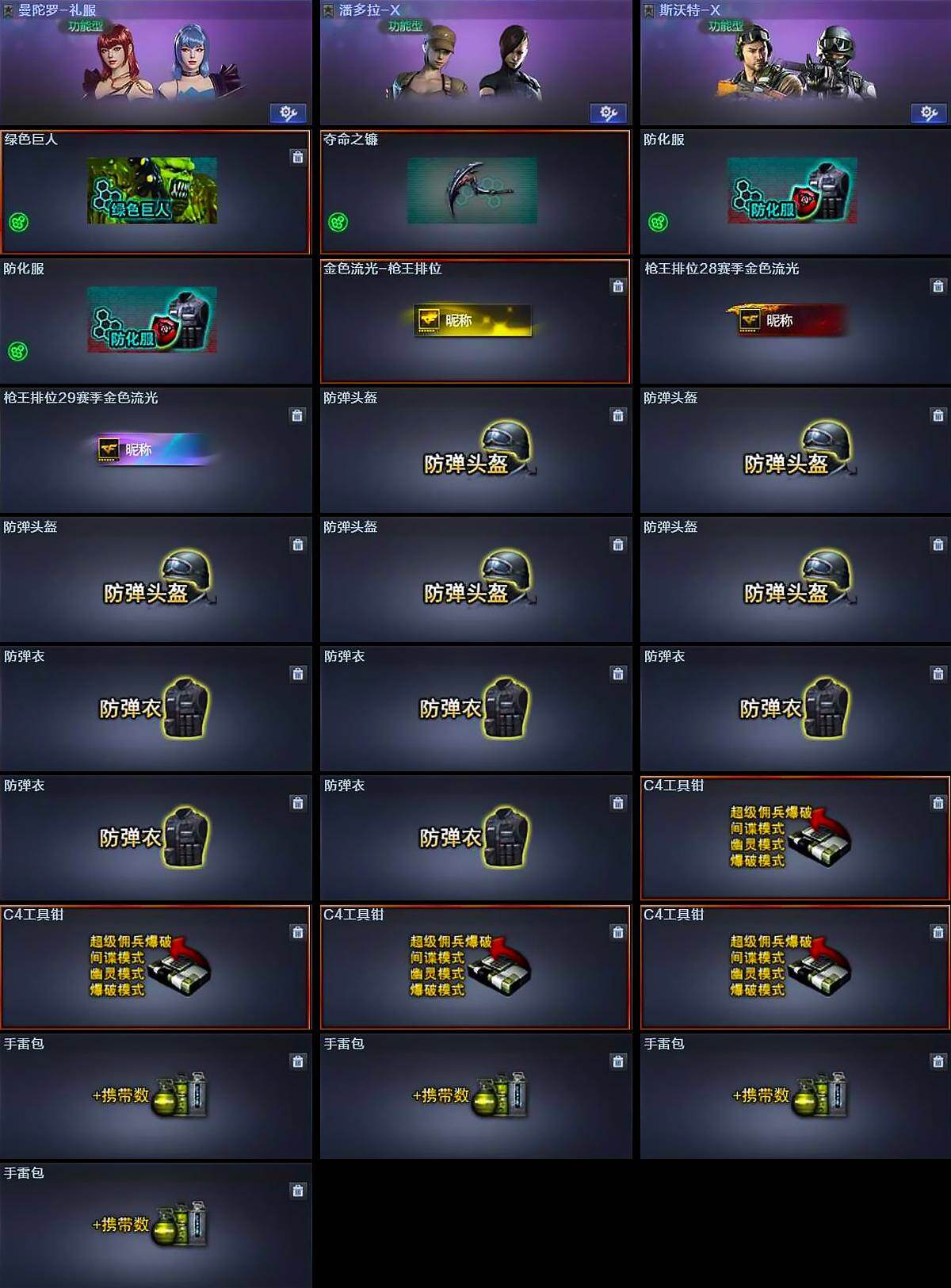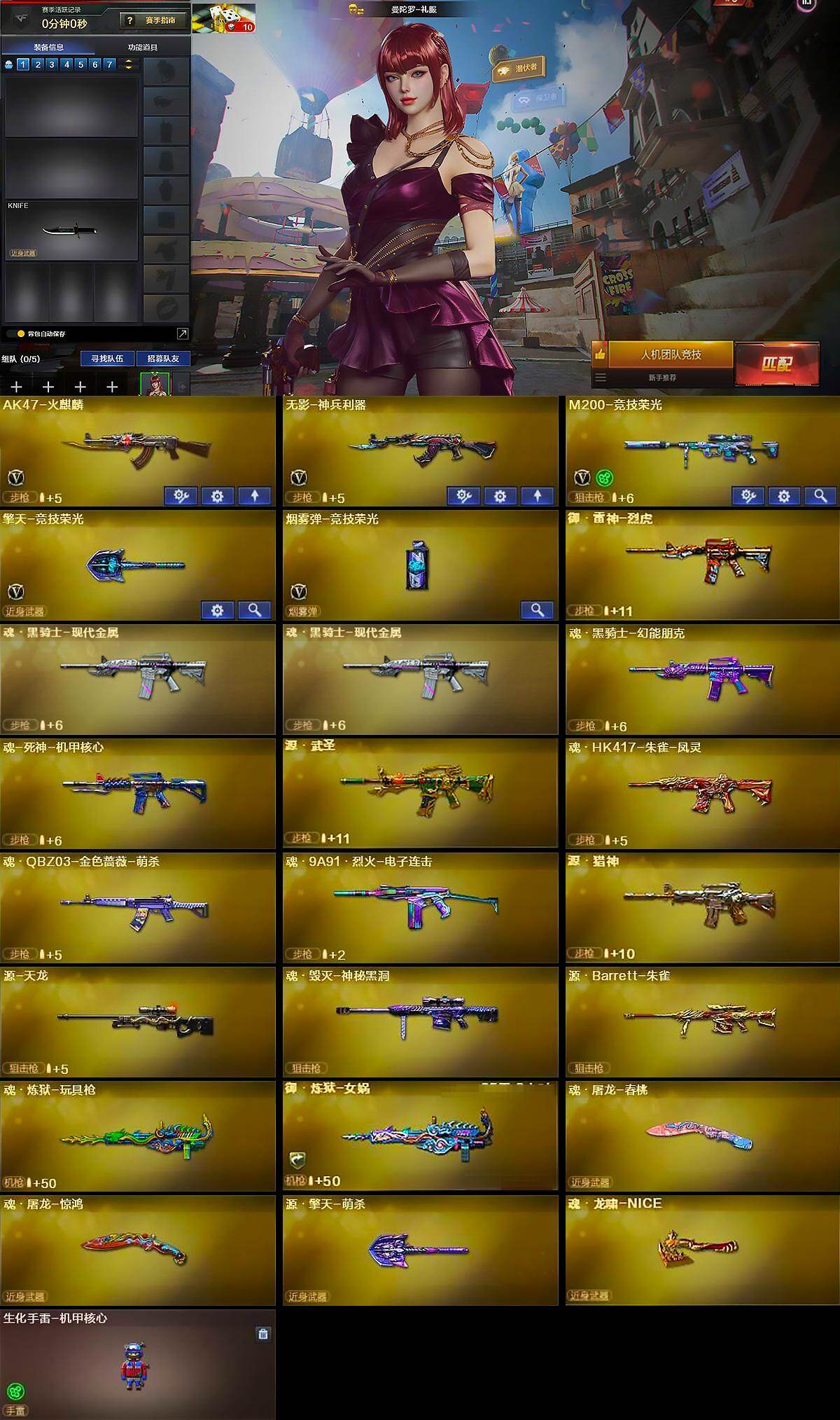 【ky5660】重庆一区-5V-0王者武器数-0炫金武器数【热门武器】:M200-竞技荣光【角色】:曼陀罗-礼服,潘多拉-X,斯沃特-X【人偶武器】:生化手雷-机甲核心【英雄级武器】:AK47-火麒麟,无影-神兵利器,M200-竞技荣光,擎天-竞技荣光,烟雾弹-竞技荣光【道具】:绿色巨人,夺命之镰,防化服*2,金色流光-枪王排位,枪王排位28赛季金色流光,枪王排位29赛季金色流光,防弹头盔*5,防弹衣*5,C4工具钳*4,手雷包*4【特殊枪械】: