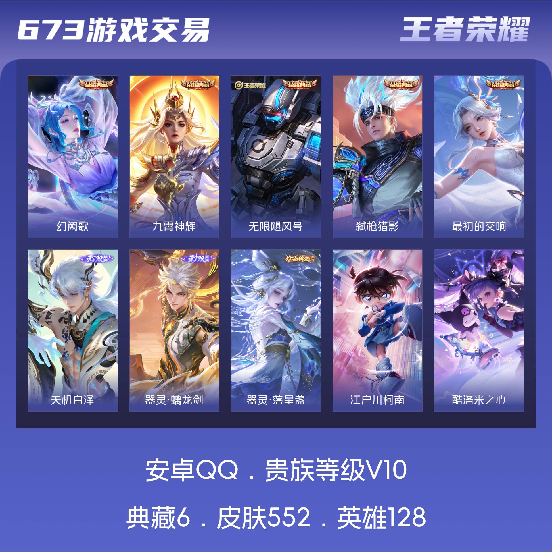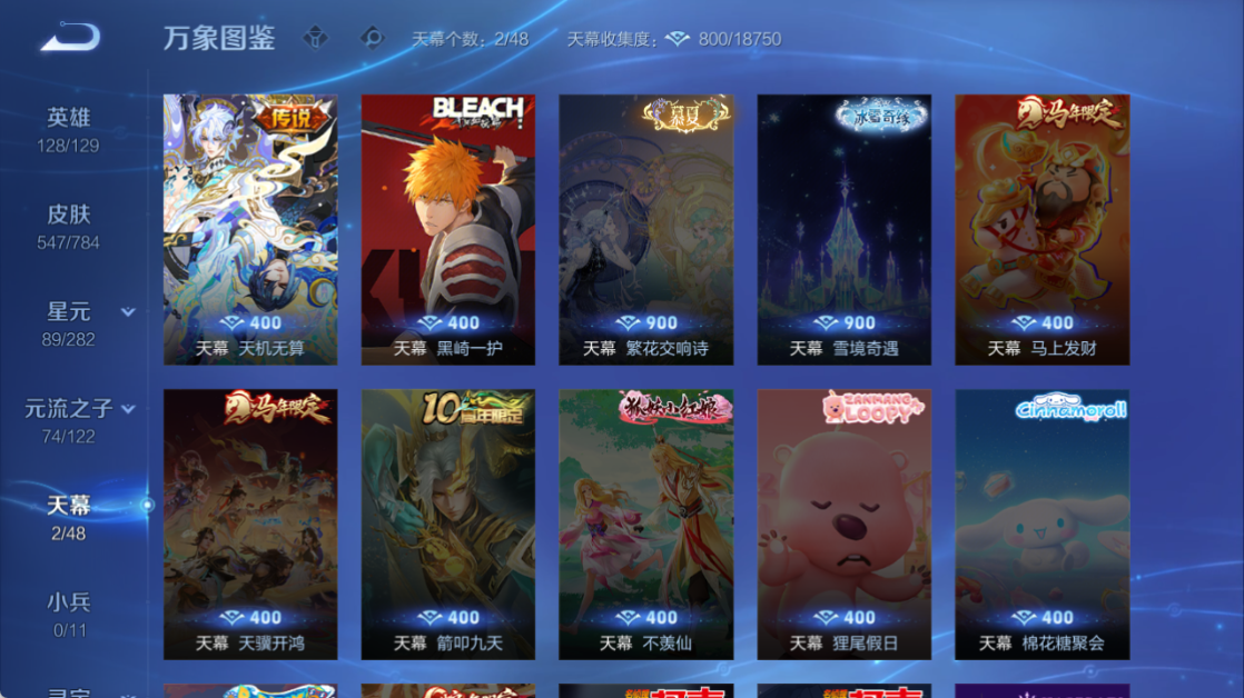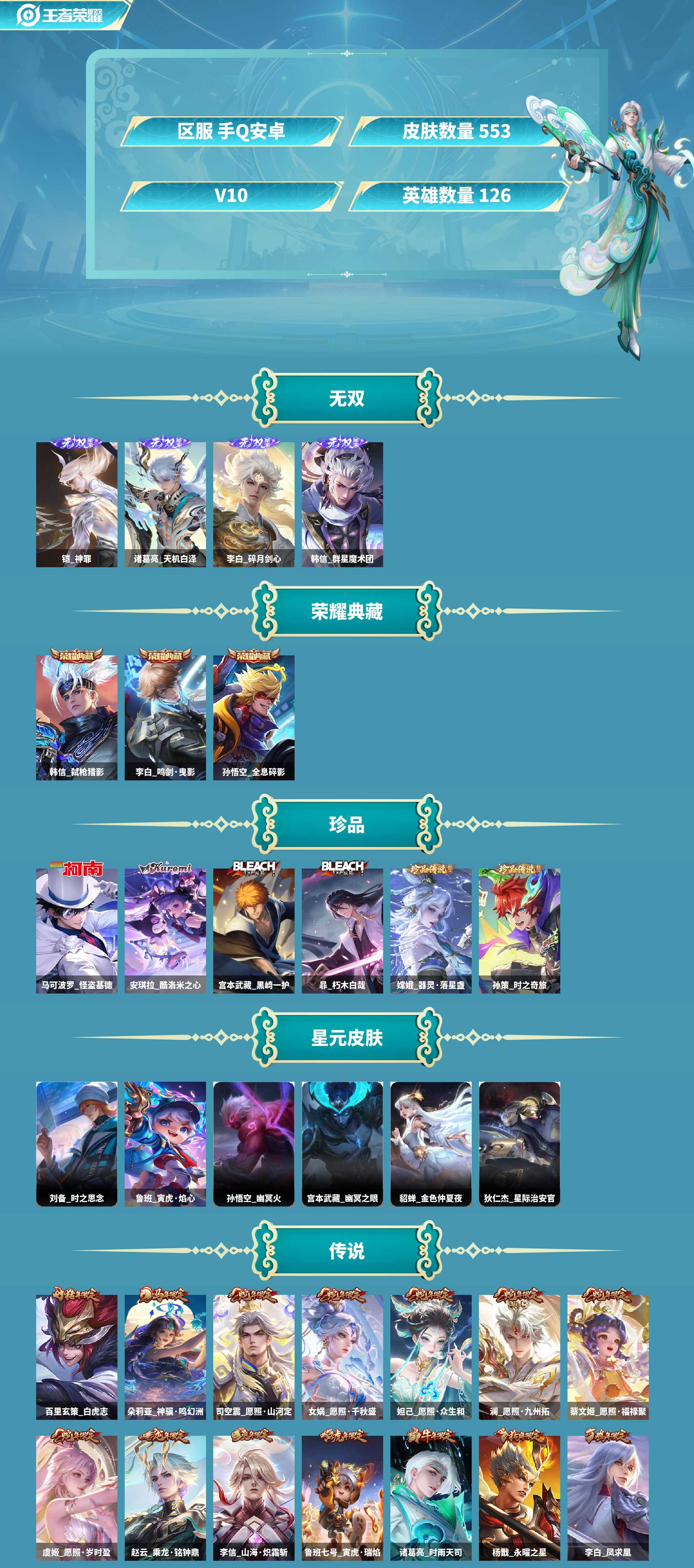 黑崎+天机双天幕!皮肤数量547印记总数19V10至圣王者可