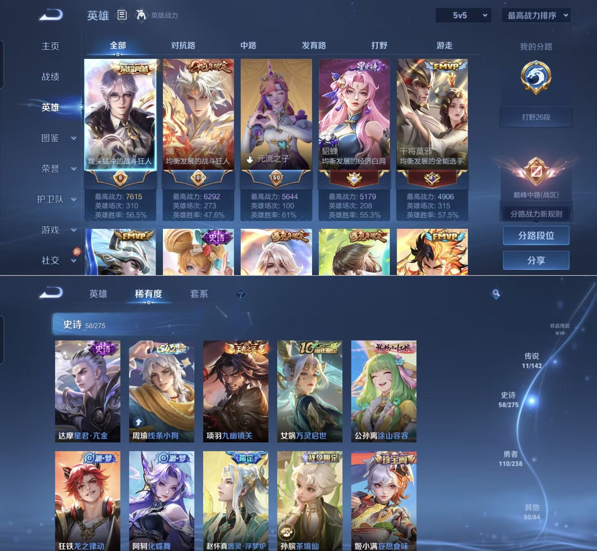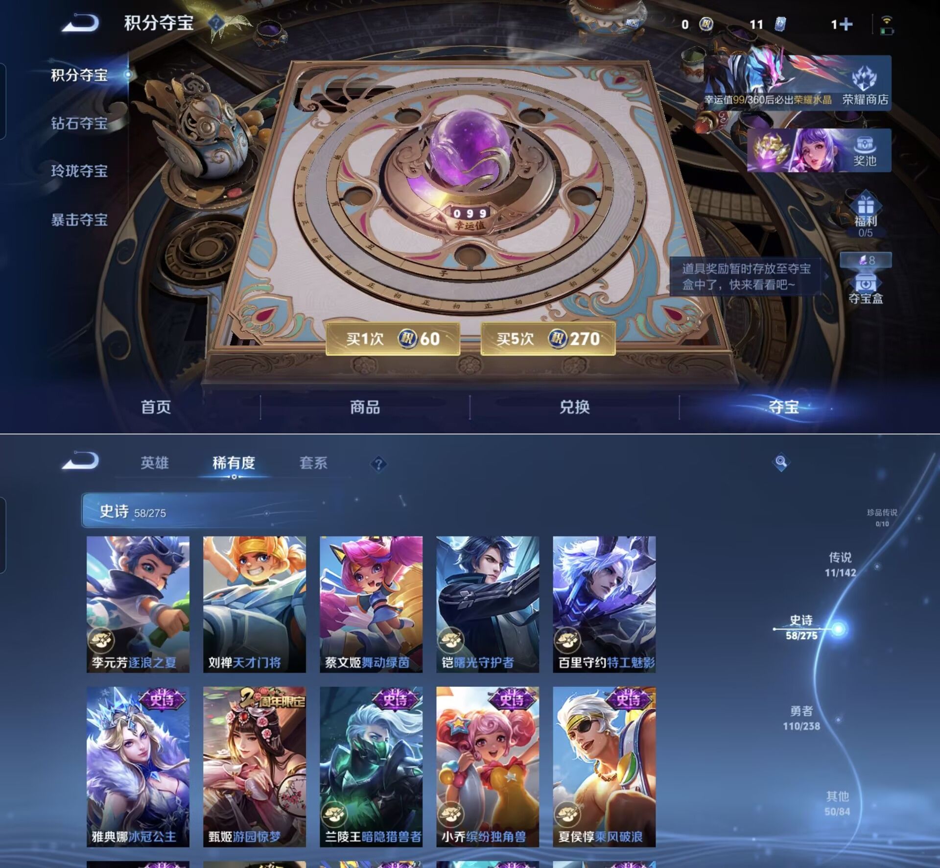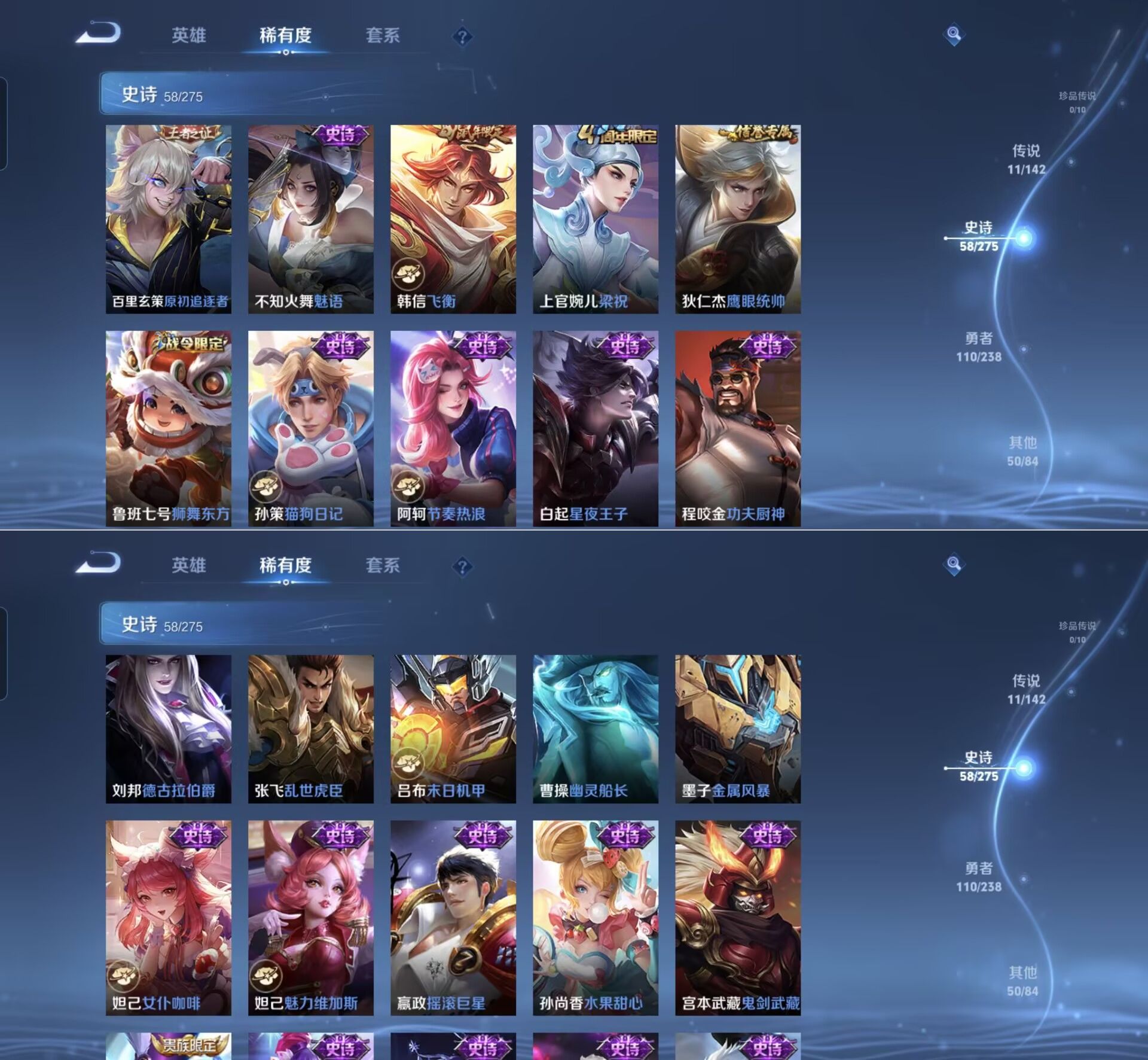 【传说皮肤】 神树通天 鸣野蒿 神骥·越千峰 祥瑞亨通 愿照·九州拓 齐天大圣 山海·炽霜斩 无双飞将 久胜战神 地狱之眼 黄金射手座 【史诗皮肤】 茶境仙 星君·亢金 飞衡 器灵·浮梦炉 玫瑰异探 布丁狗之约 谧流熔炉 电玩小子 涂山容容 龙之律动 线条小狗 九幽镇关 山海·玄木吟 踏浪烽翎 聚星闪耀 江河有灵 荣光圣徽 漠中幻影 万灵启世 化蝶舞 星界游侠 热力回旋