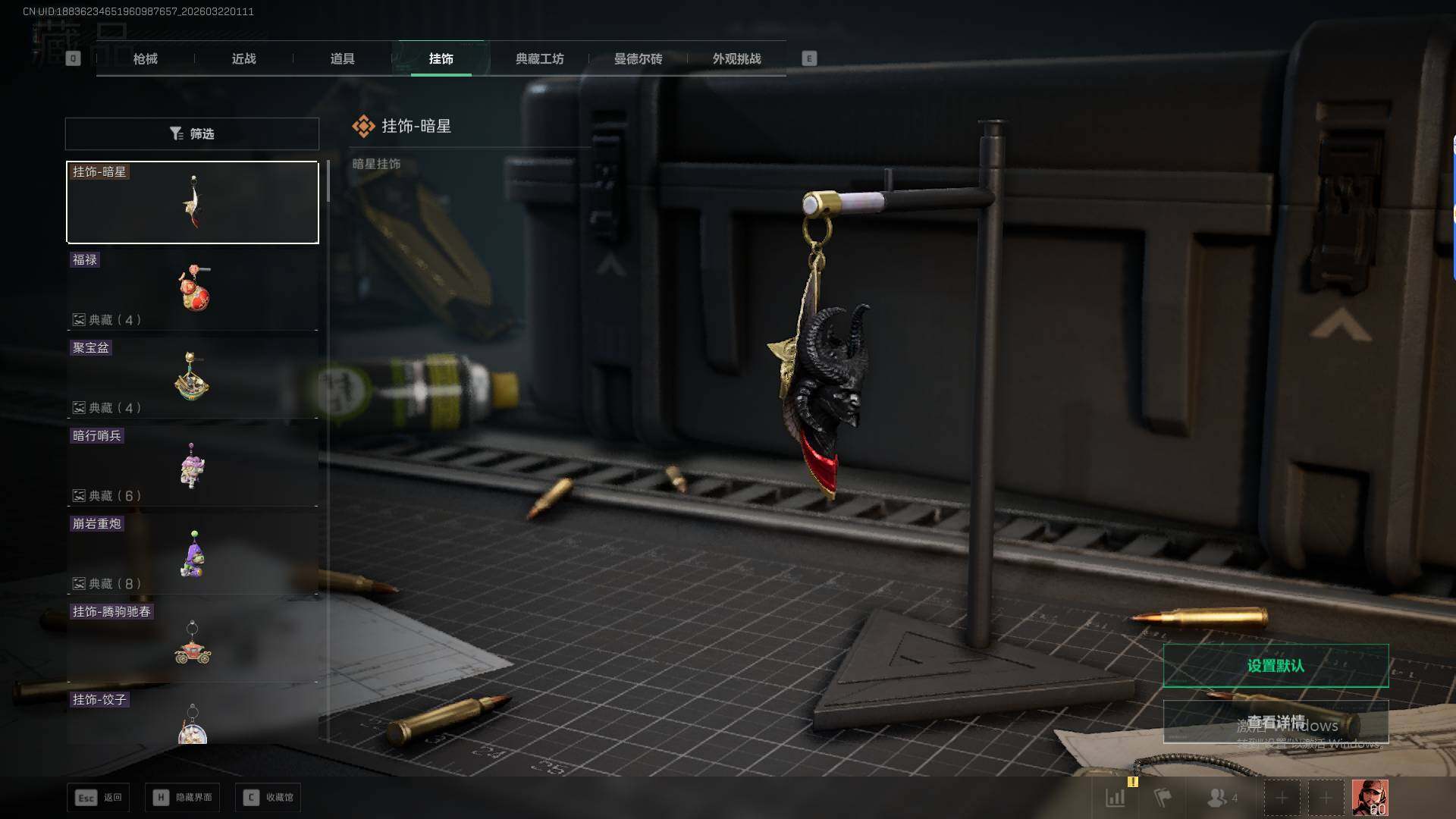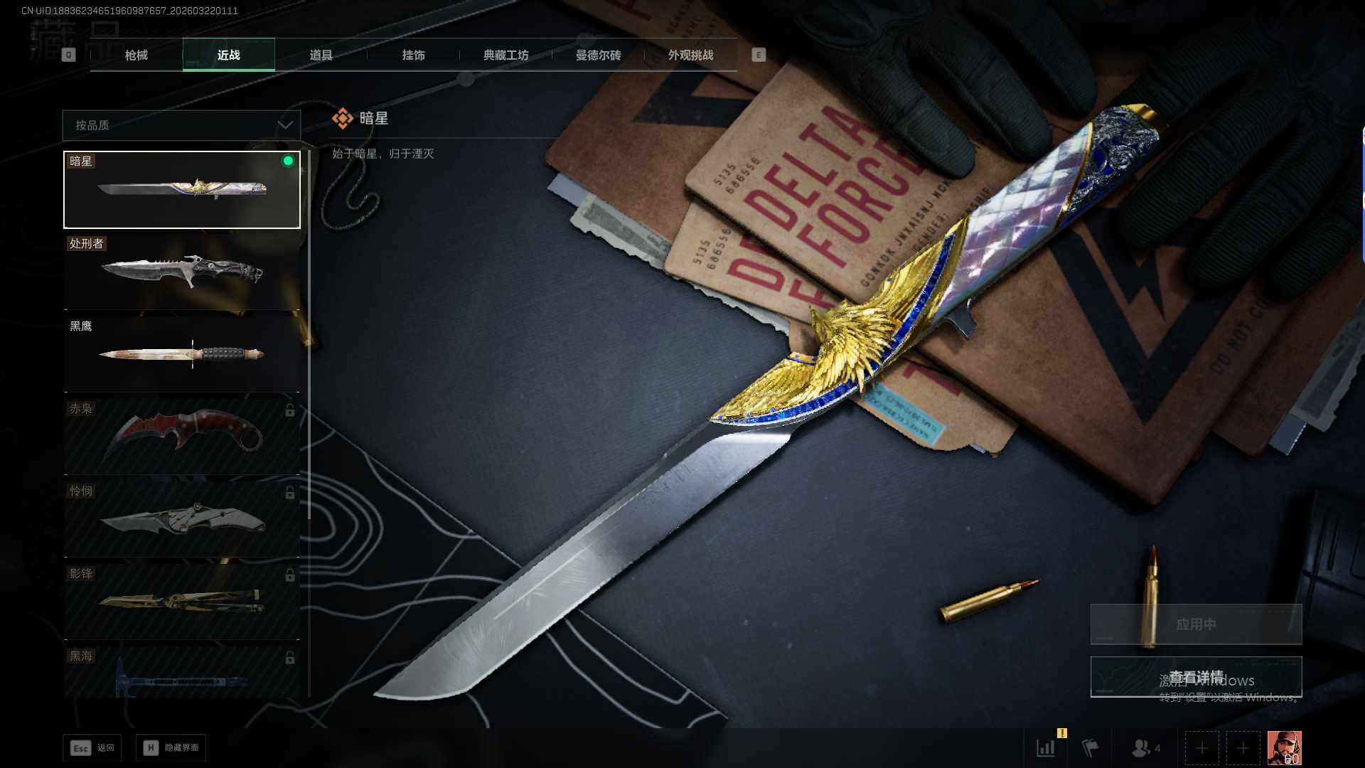 【近战皮肤】:近战-暗星,近战-处刑者1级,近战-黑鹰