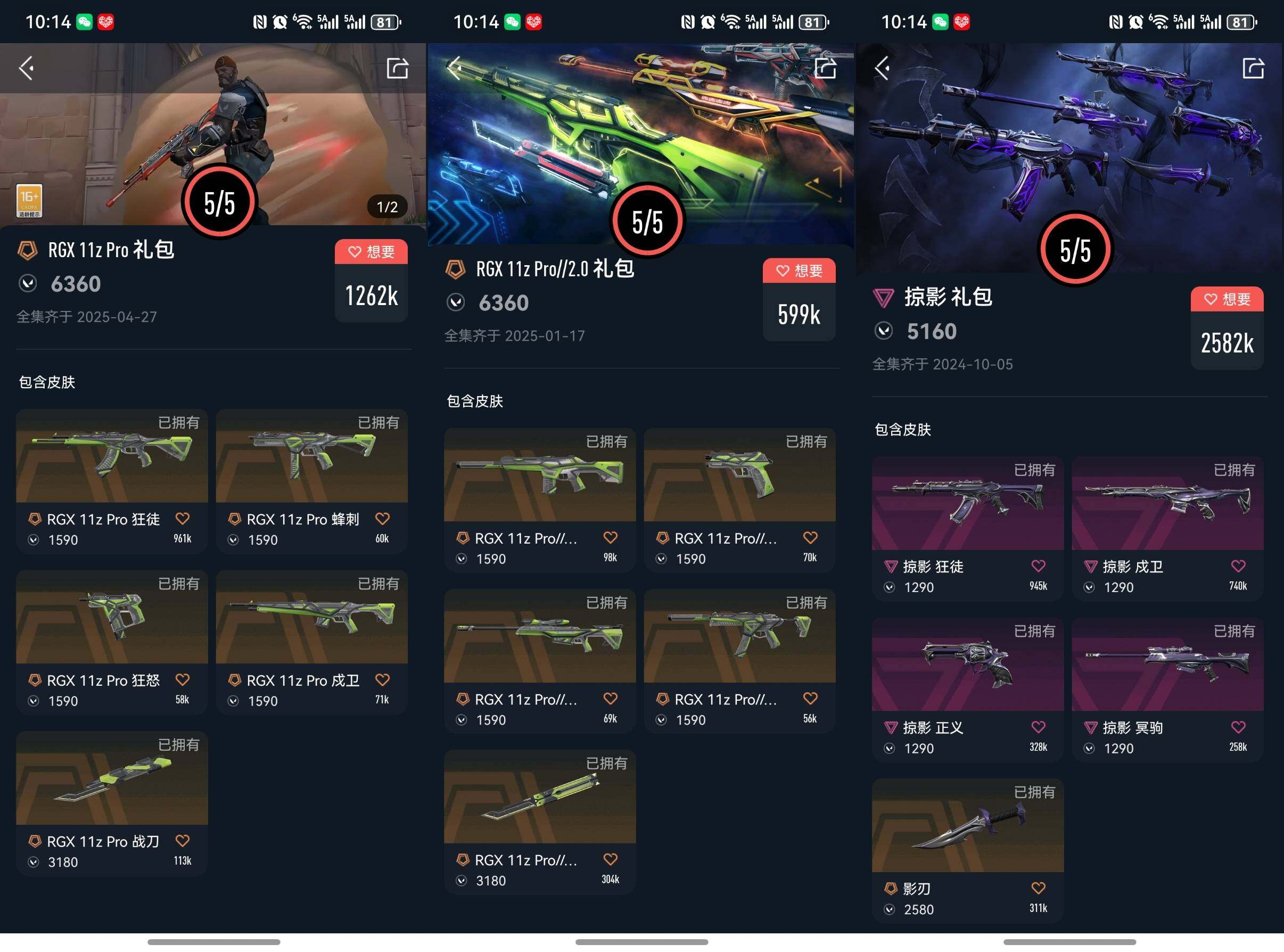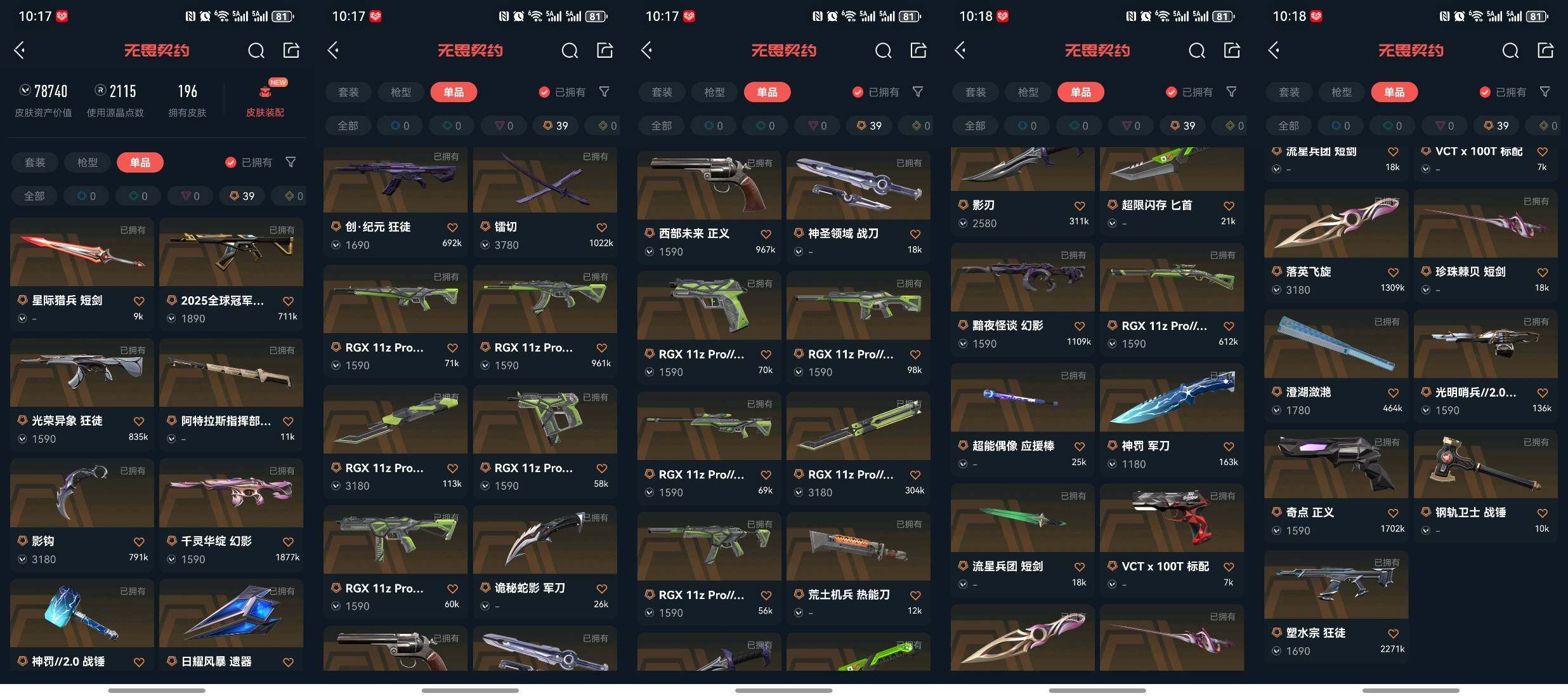 ad06,送安q王者,资产价值78740,RGX11zPro//2.0礼包,RGX11zPro礼包,掠影礼包,2黄皮39橙皮17紫皮,影钩,幻影,判官,军刀,狂徒,战锤,镭切,正义,卡面233喷漆235挂饰161
