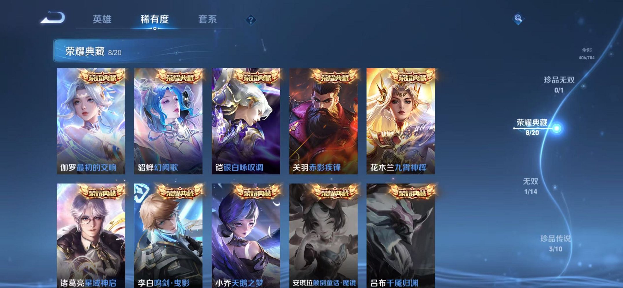 V10 紫瑶406皮肤8水晶1无双3星元3珍品47传说1天幕