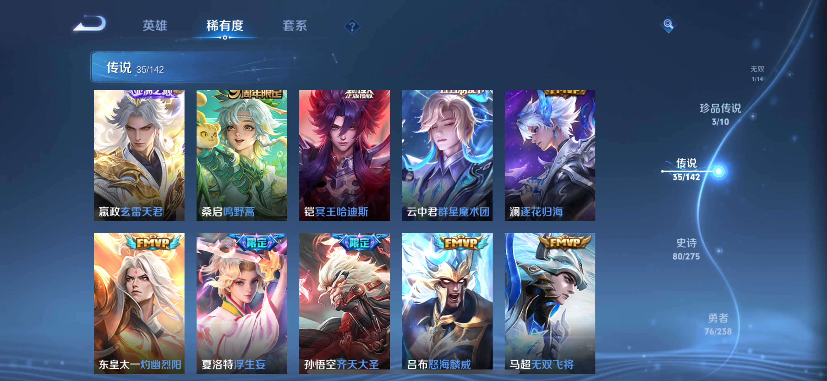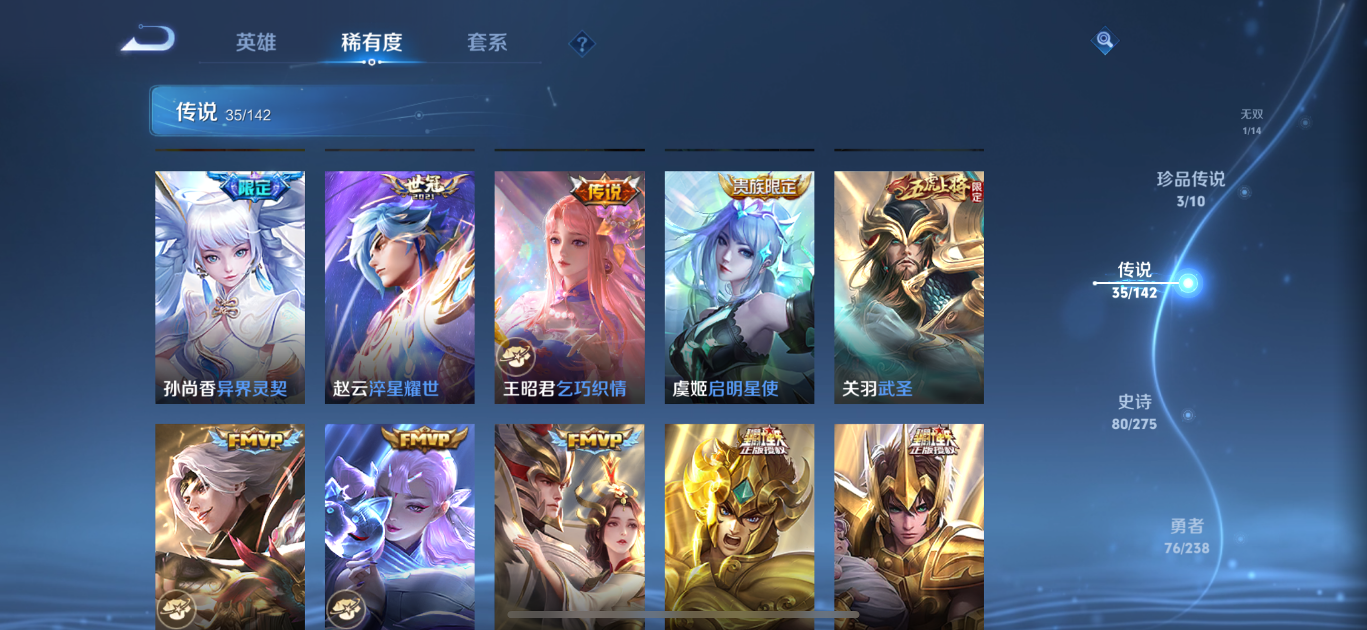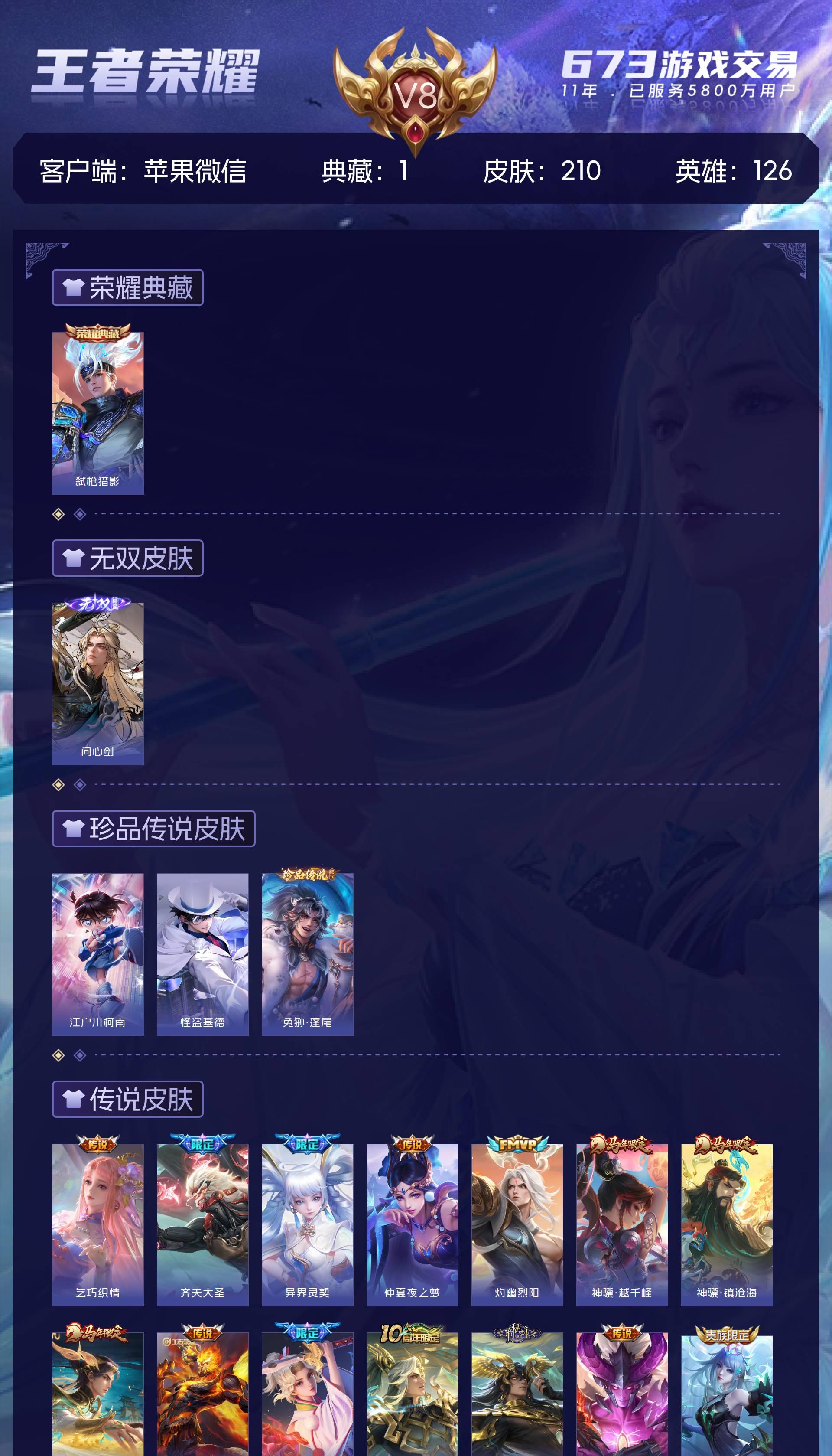 V8 皮肤210 英雄126 荣耀王者 荣耀典藏1 无双皮肤1 珍品传说3 星传说3 传说35