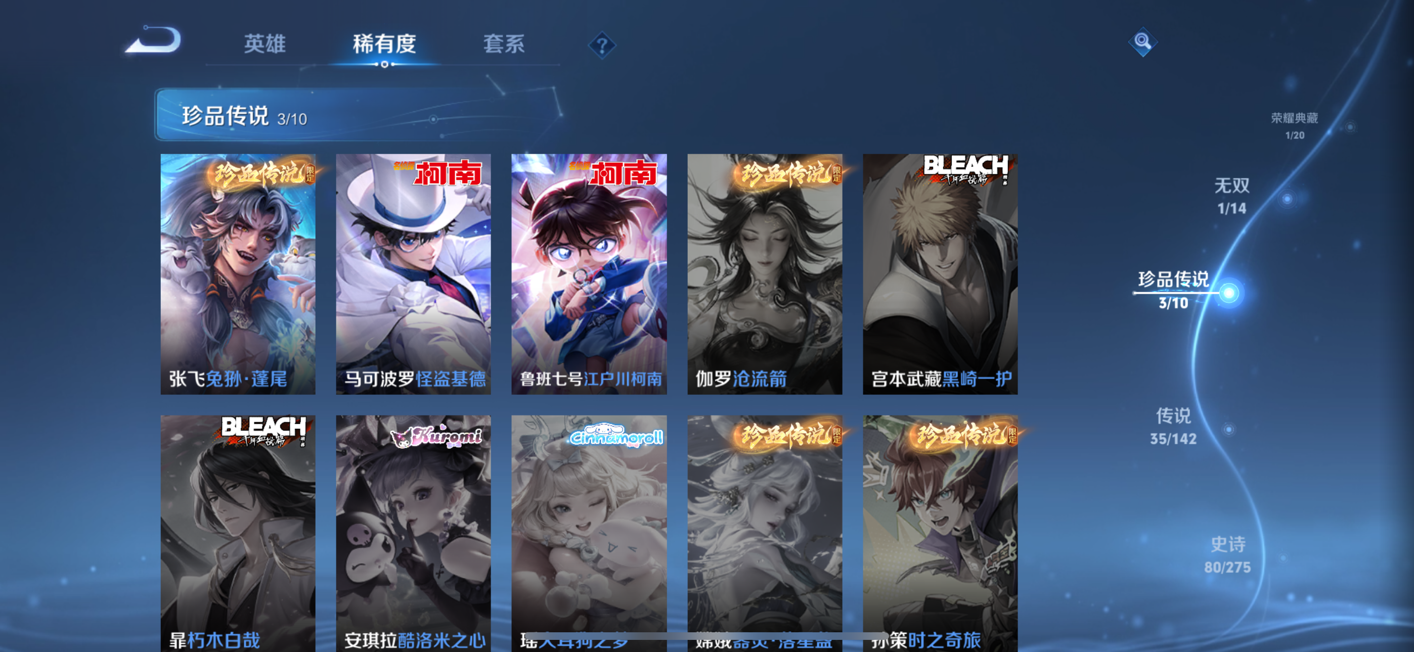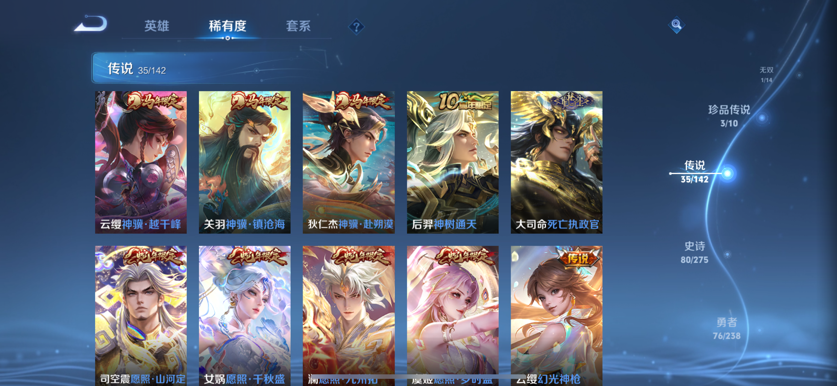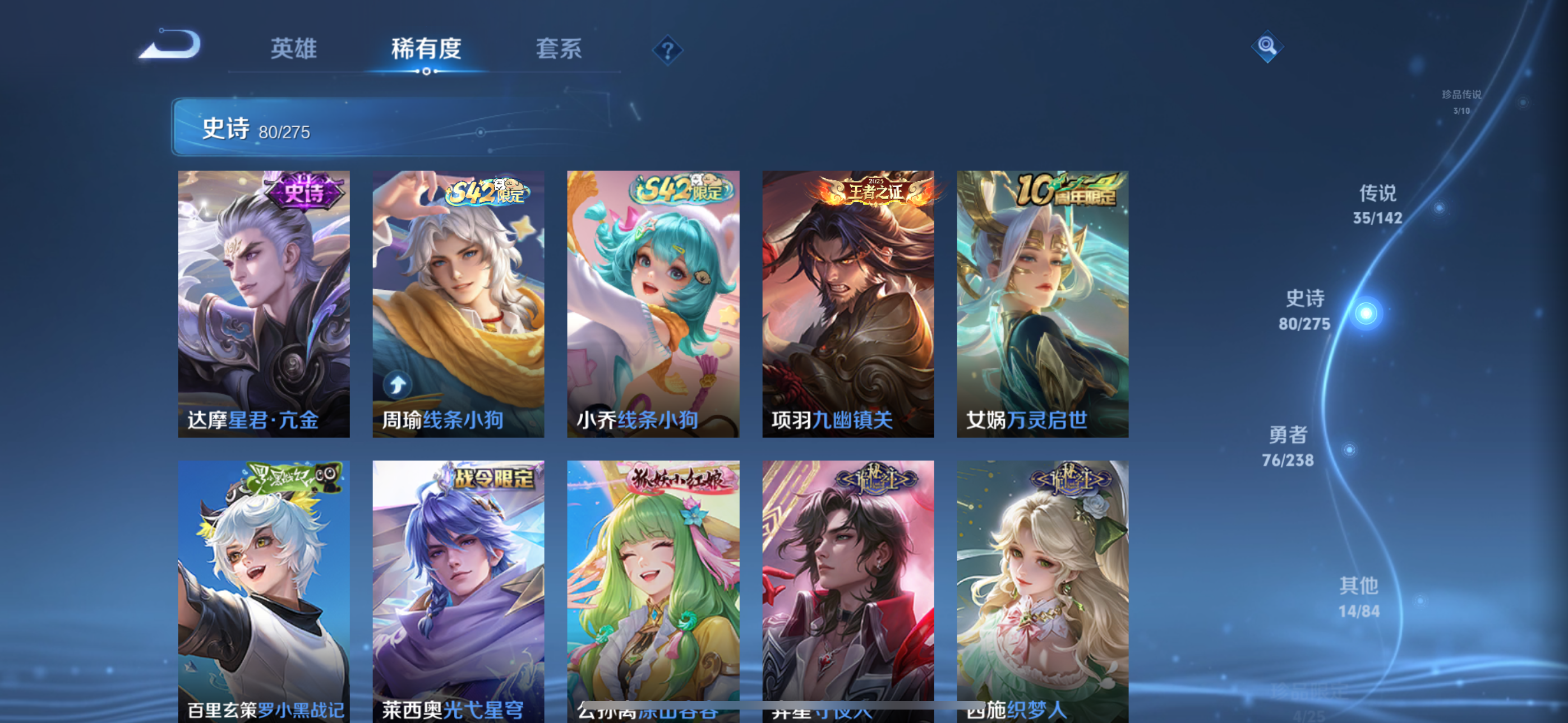 V8 皮肤210 英雄126 荣耀王者 荣耀典藏1 无双皮肤1 珍品传说3 星传说3 传说35