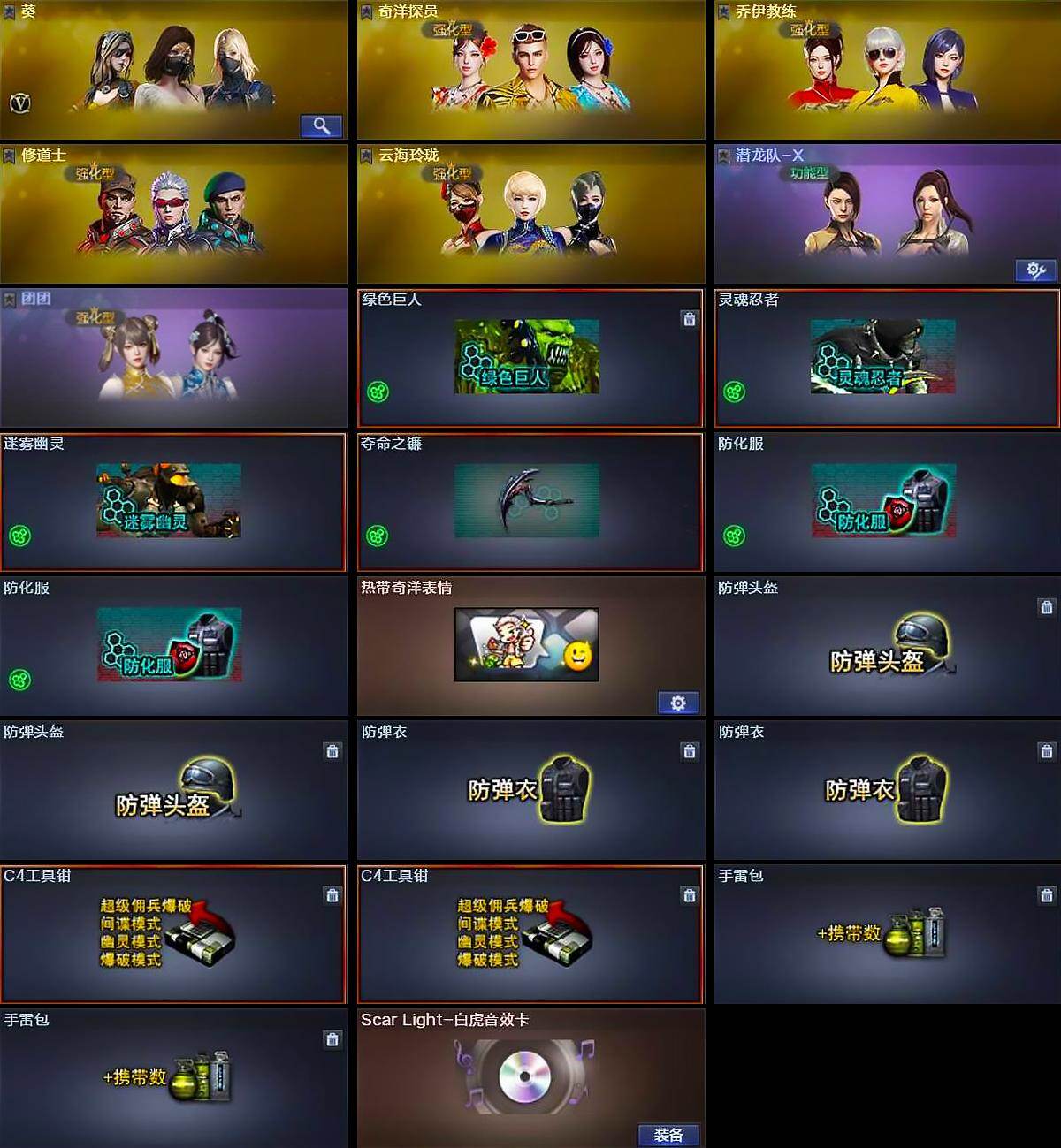 【英雄级武器】:M4A1-雷神,Scar Light-白虎,龙啸*2,龙啸-烈火龙威