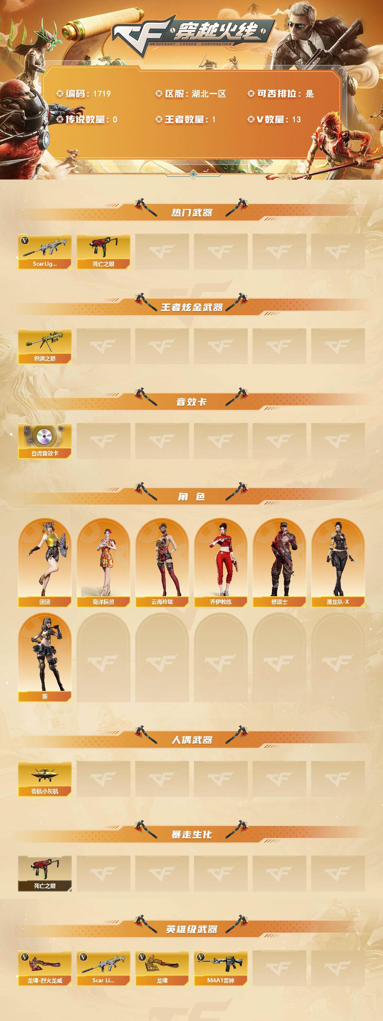 湖北一区-13V-1王者武器数-0炫金武器数