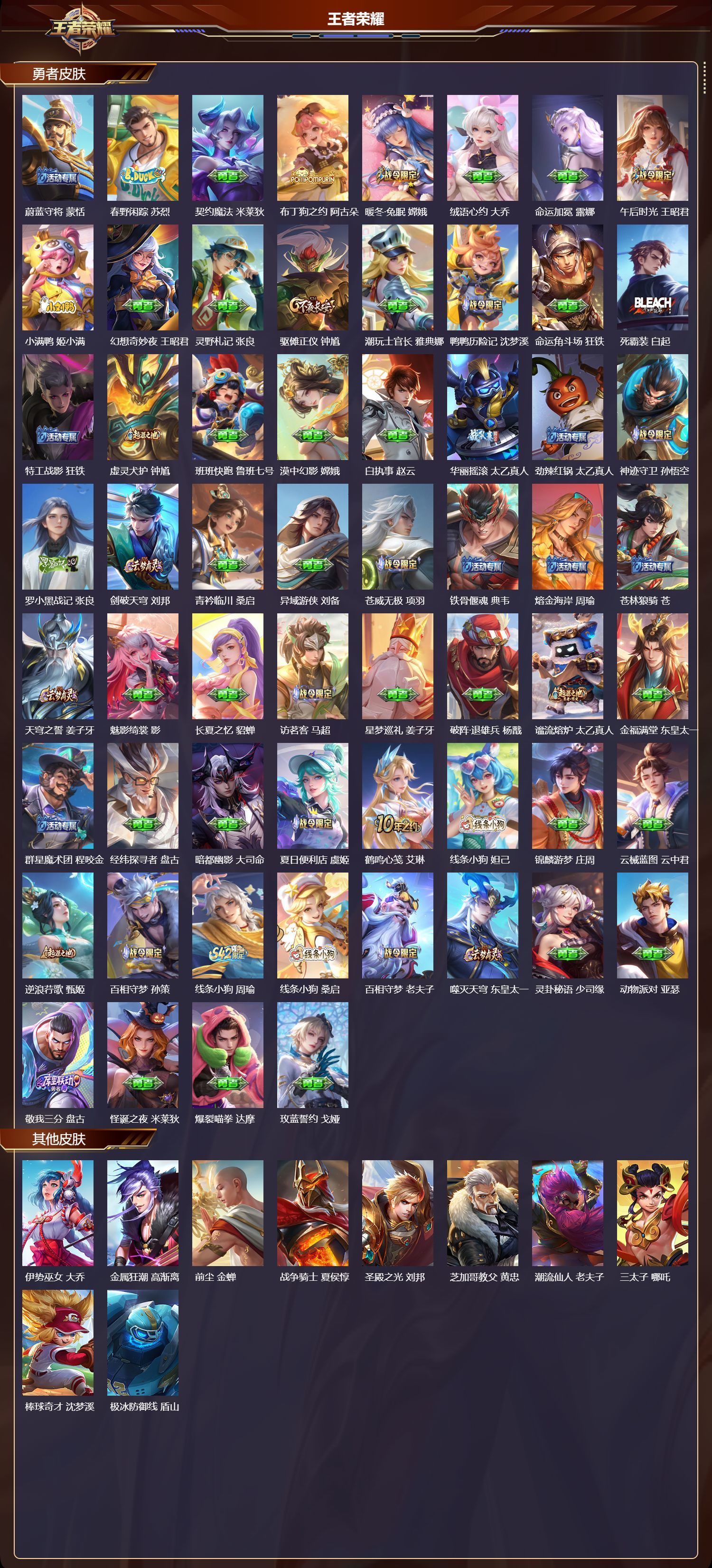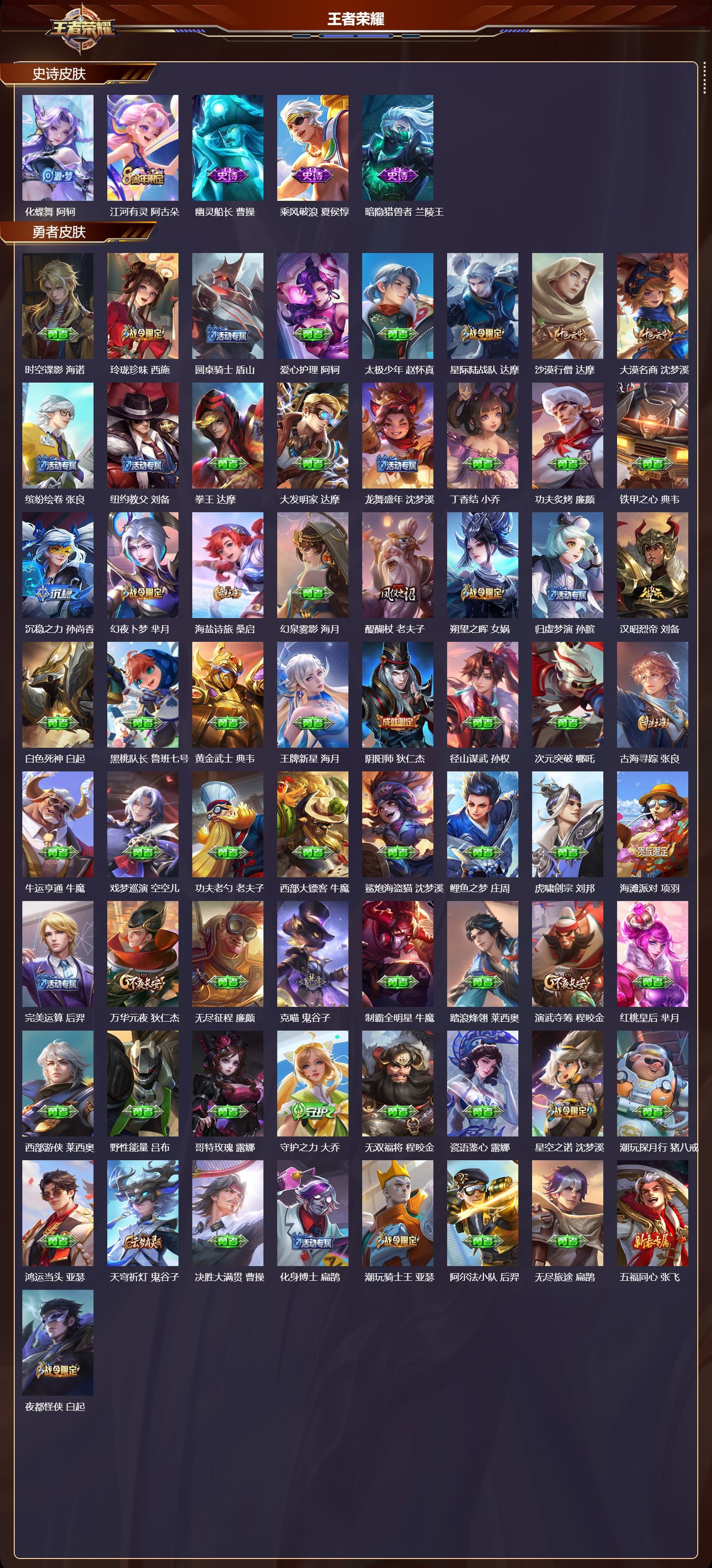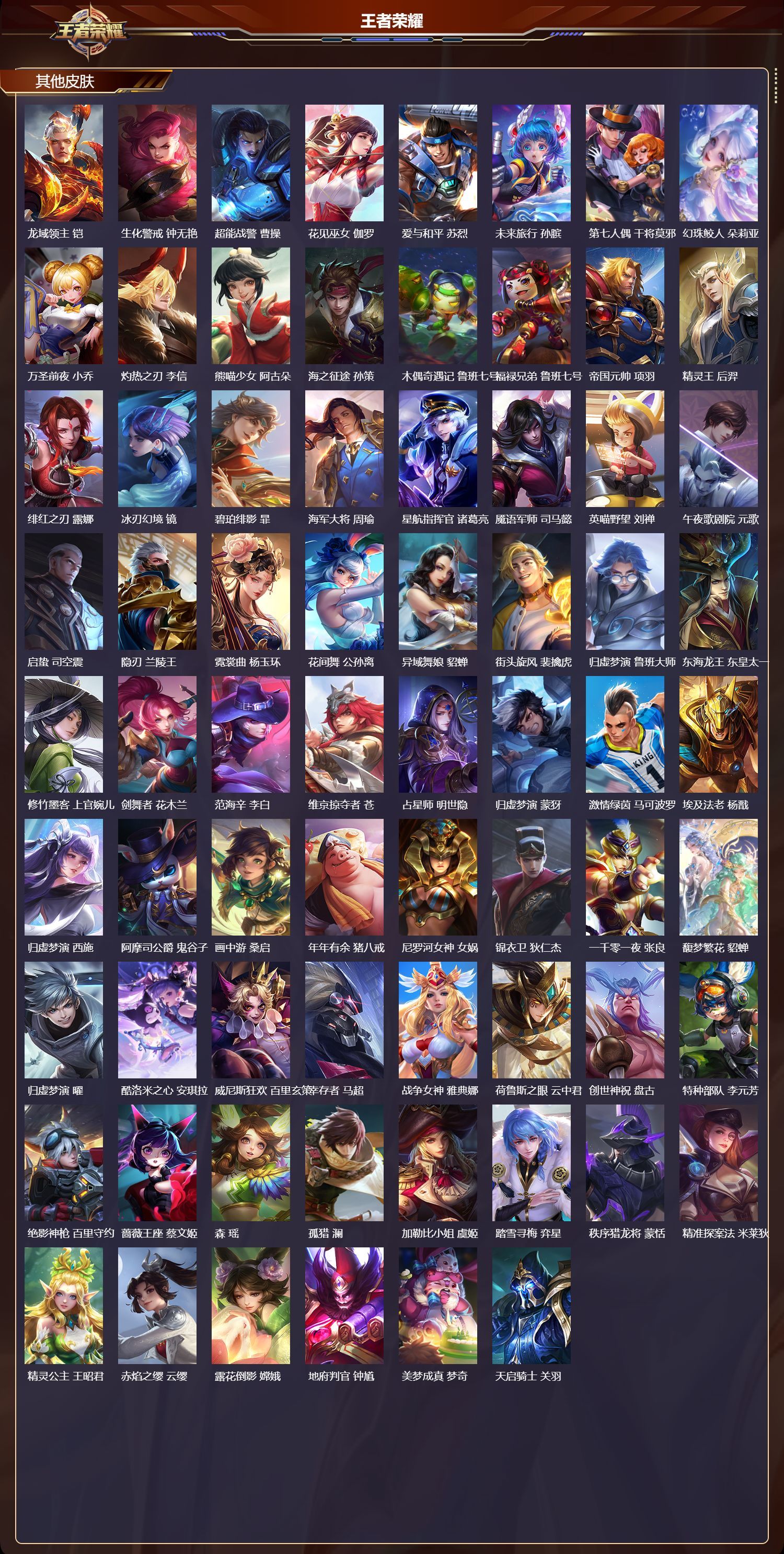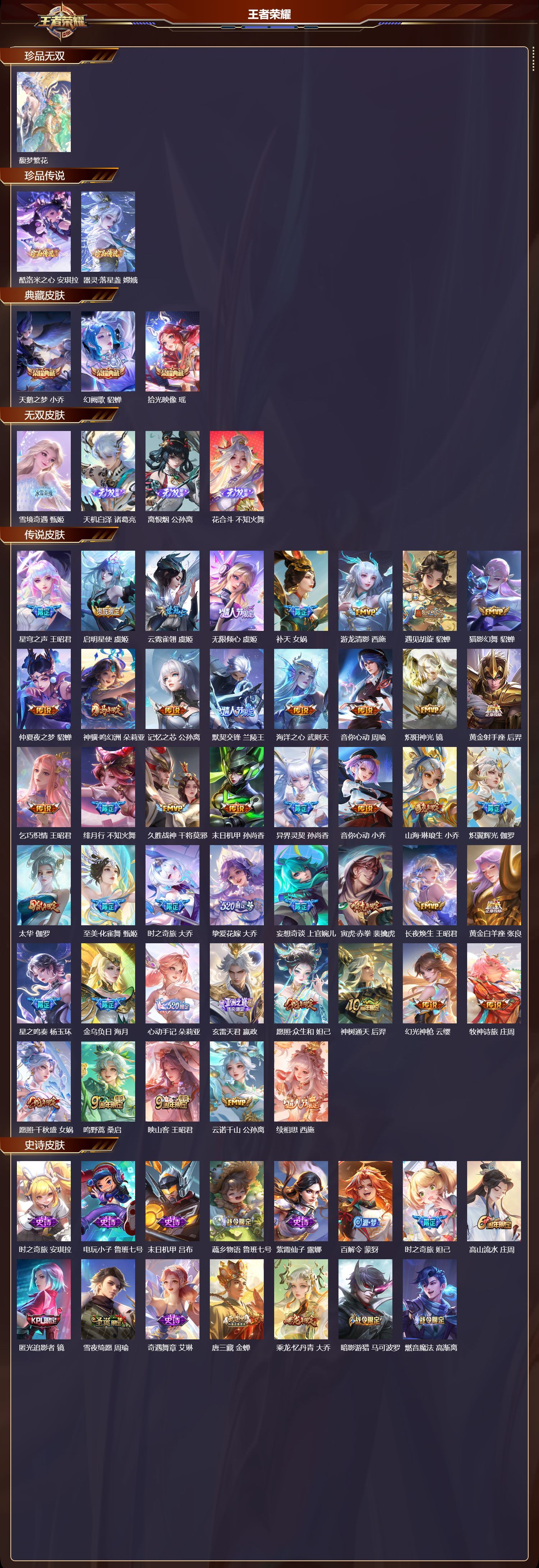 安卓QQ/荣耀王者/487皮肤/128英雄/3典藏/1珍品无双/4无双/2珍品传说/45传说/160
