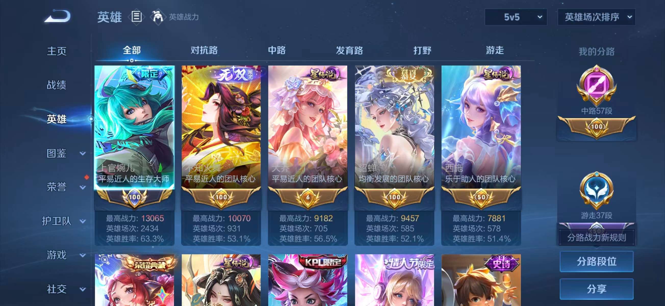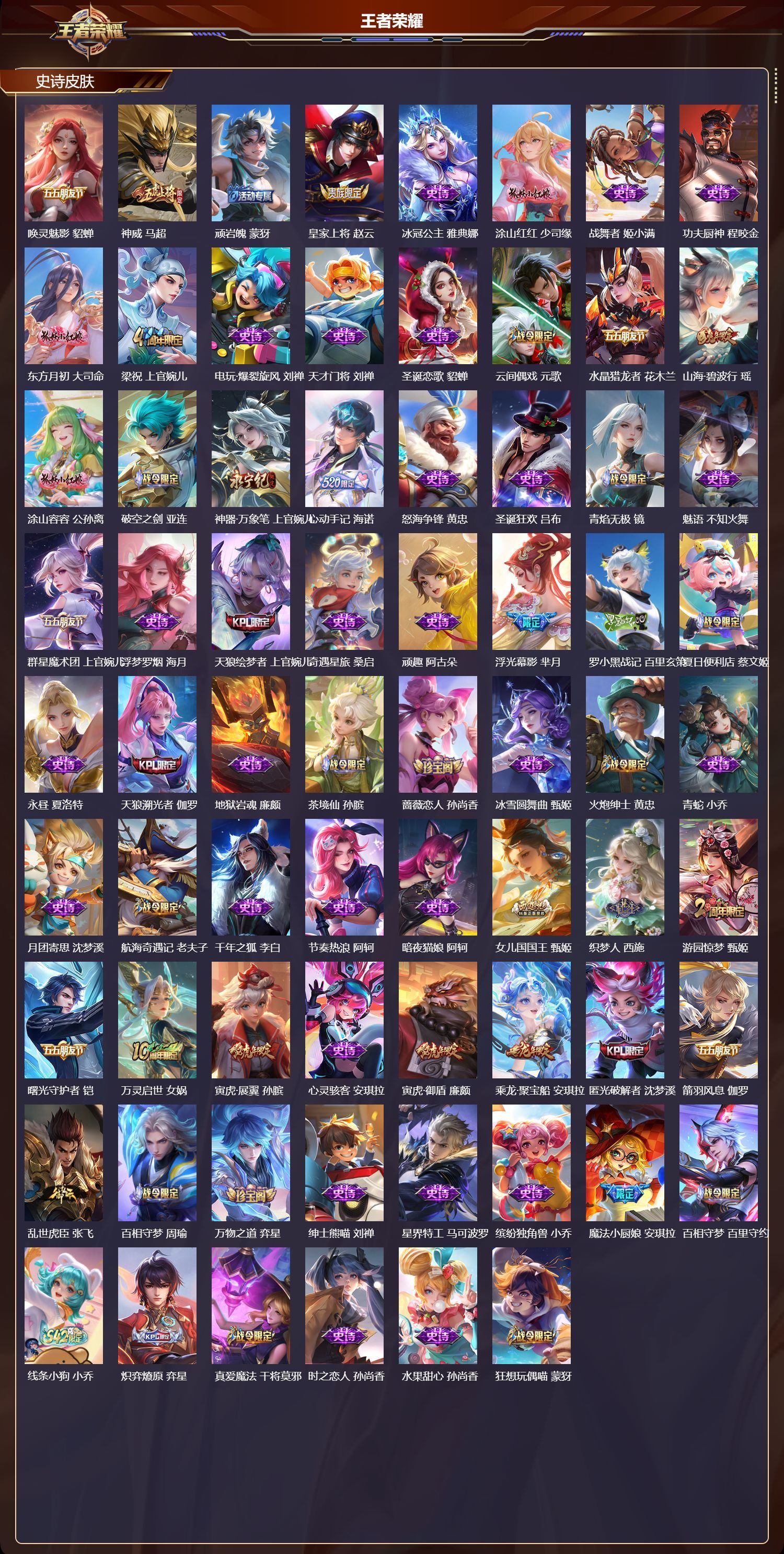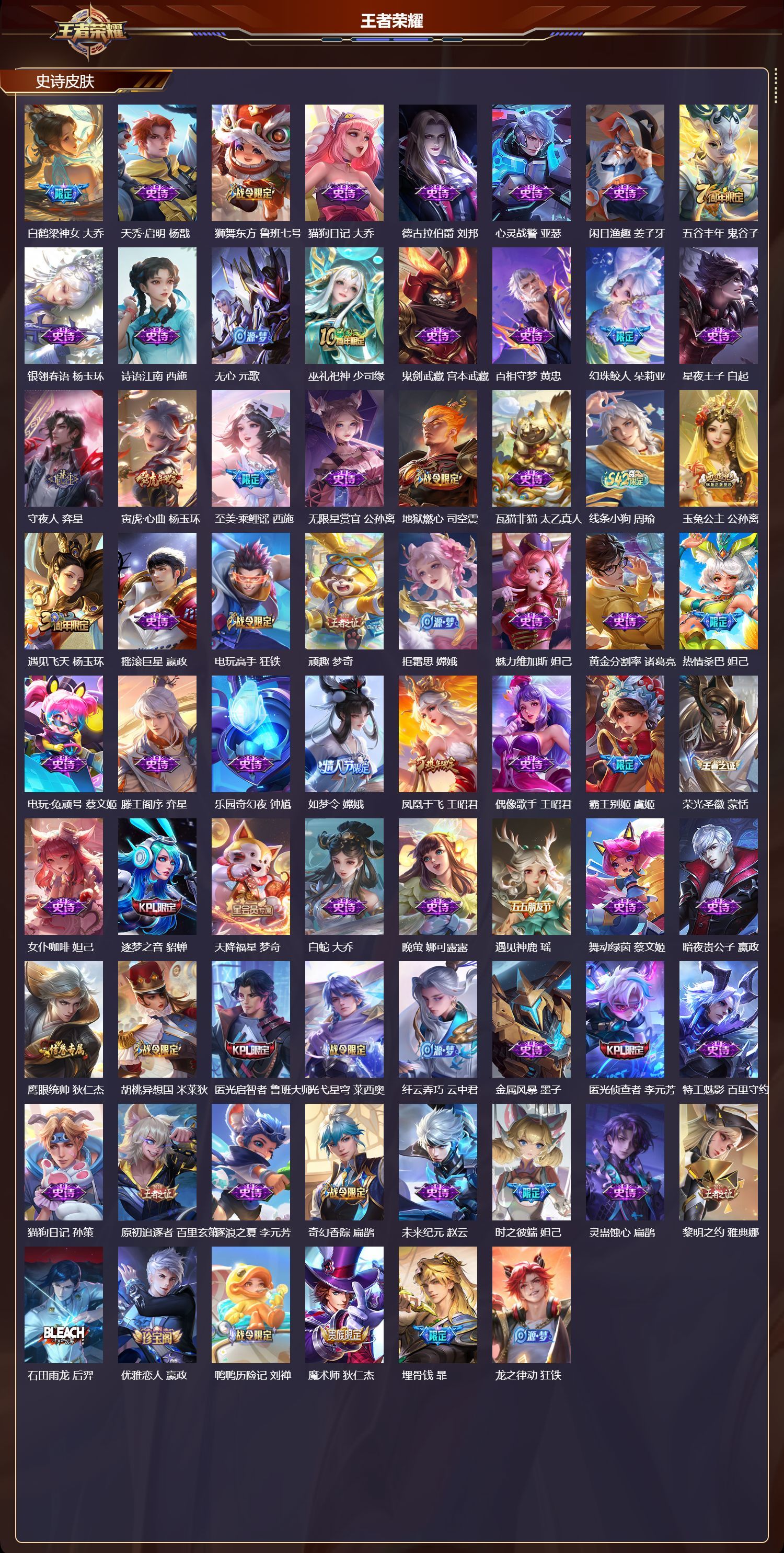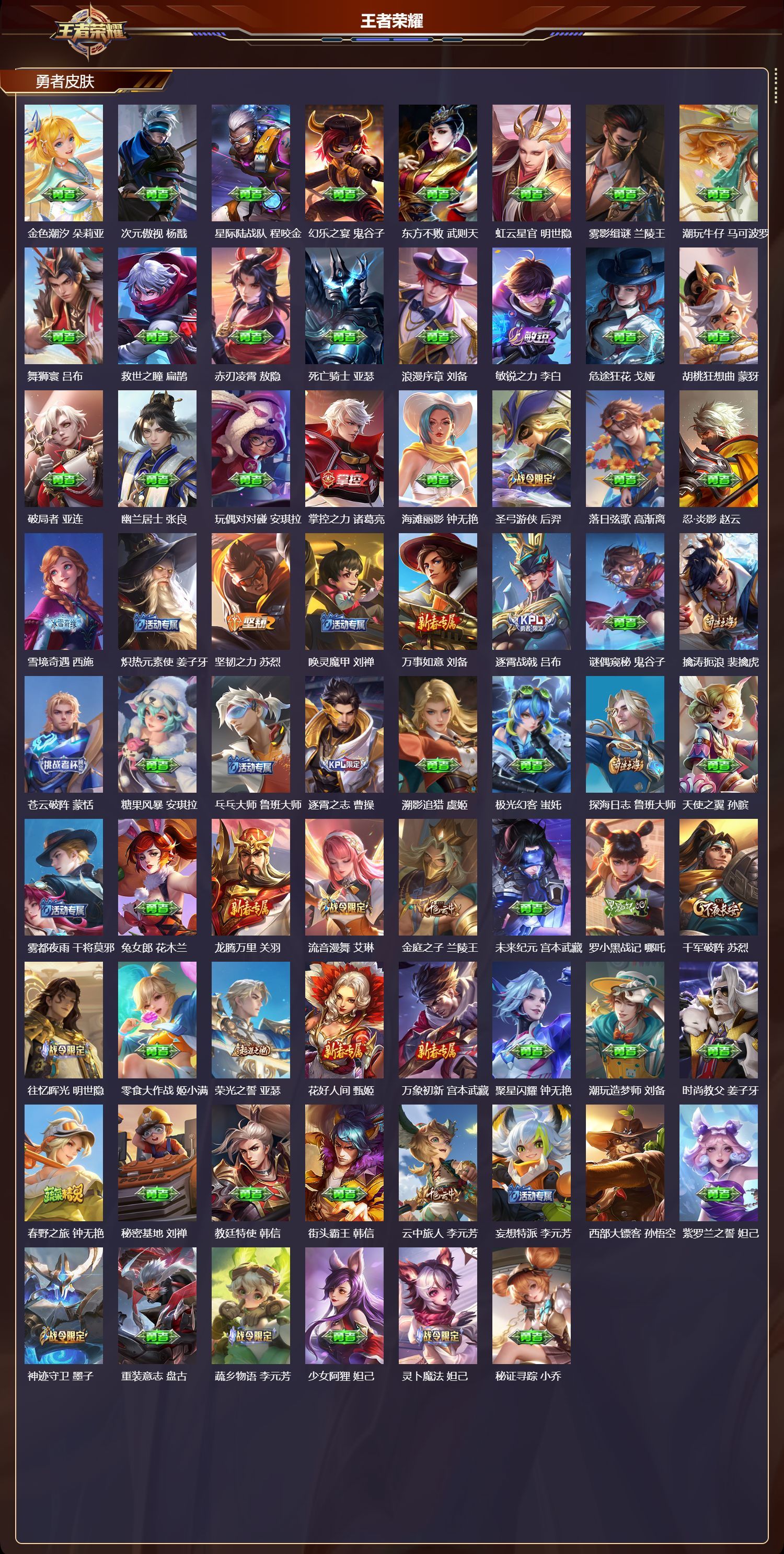 安卓QQ/荣耀王者/487皮肤/128英雄/3典藏/1珍品无双/4无双/2珍品传说/45传说/160