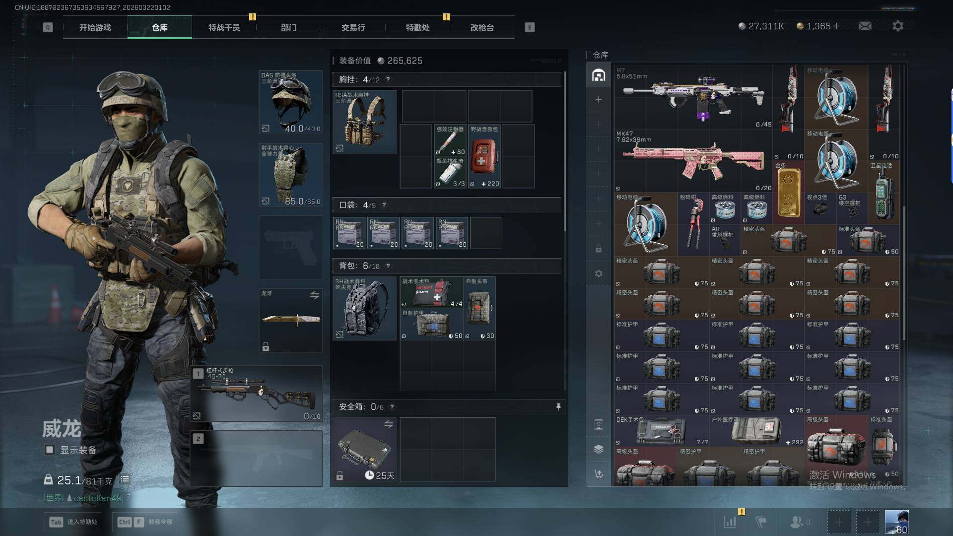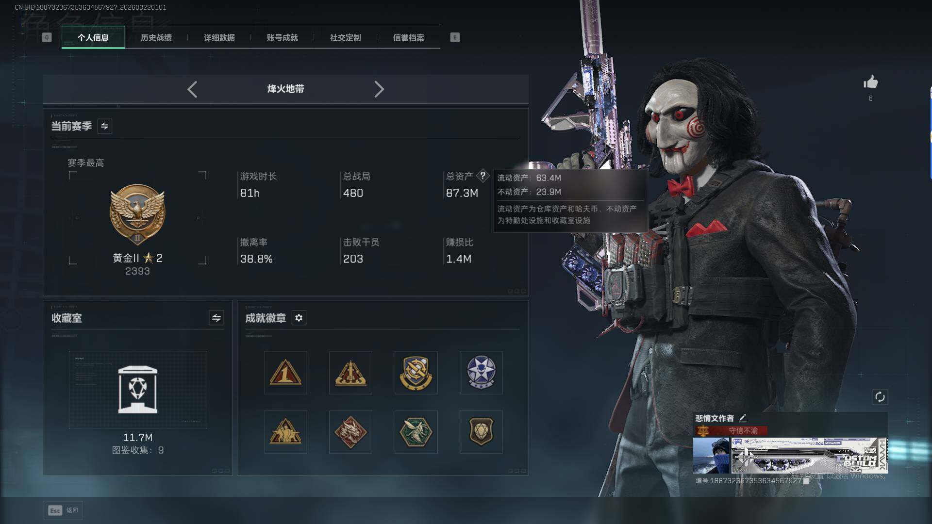 87m总资产-27311k哈夫币-60烽火等级-黄金-5战场等级-无军衔