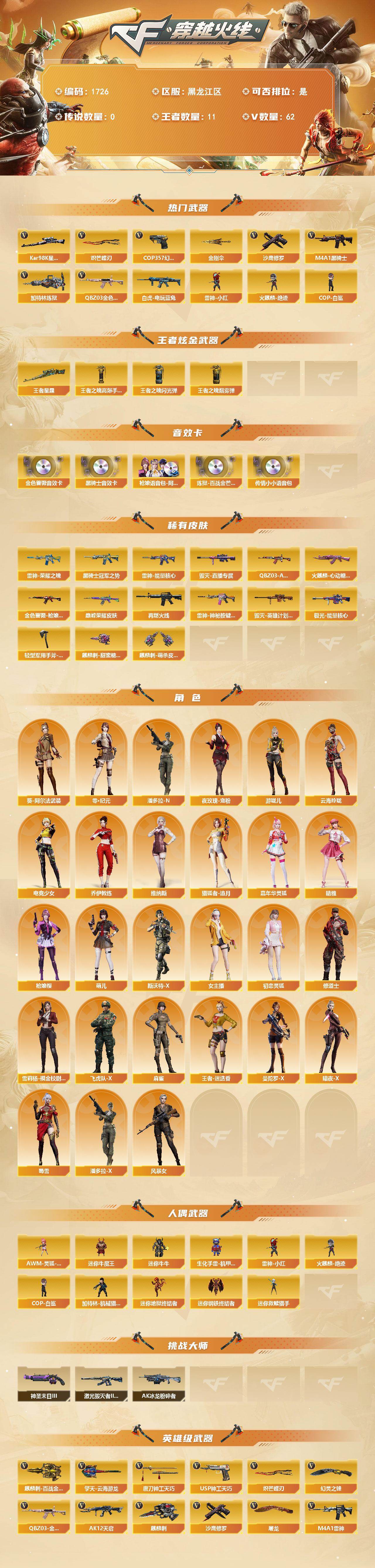 黑龙江区-67V-11王者武器数-0炫金武器数