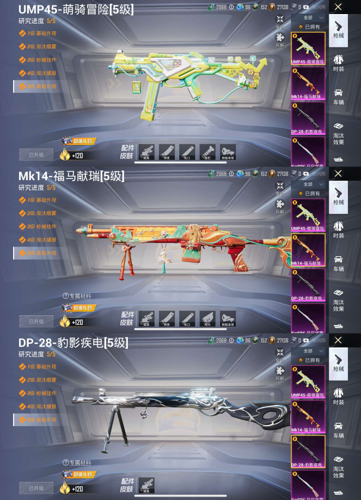 素材号-1粉装-6特效枪-8飞行器 地铁已开 52236热力值-15王牌印记 蓝螳螂 奇异狩猎者 暗影哥特 无二次协助 -148套装-186枪皮【优质套装】: 萨利娅【特效枪等级】:Kar98K-巳巳如意(五级- Kar98K-巳巳如意)M416-电玩时刻(五级- M416-电玩时刻)AKM-绿萝繁花(五级- AKM-绿萝繁花)【优质武器皮肤】: Kar98K-巳巳如意 M41