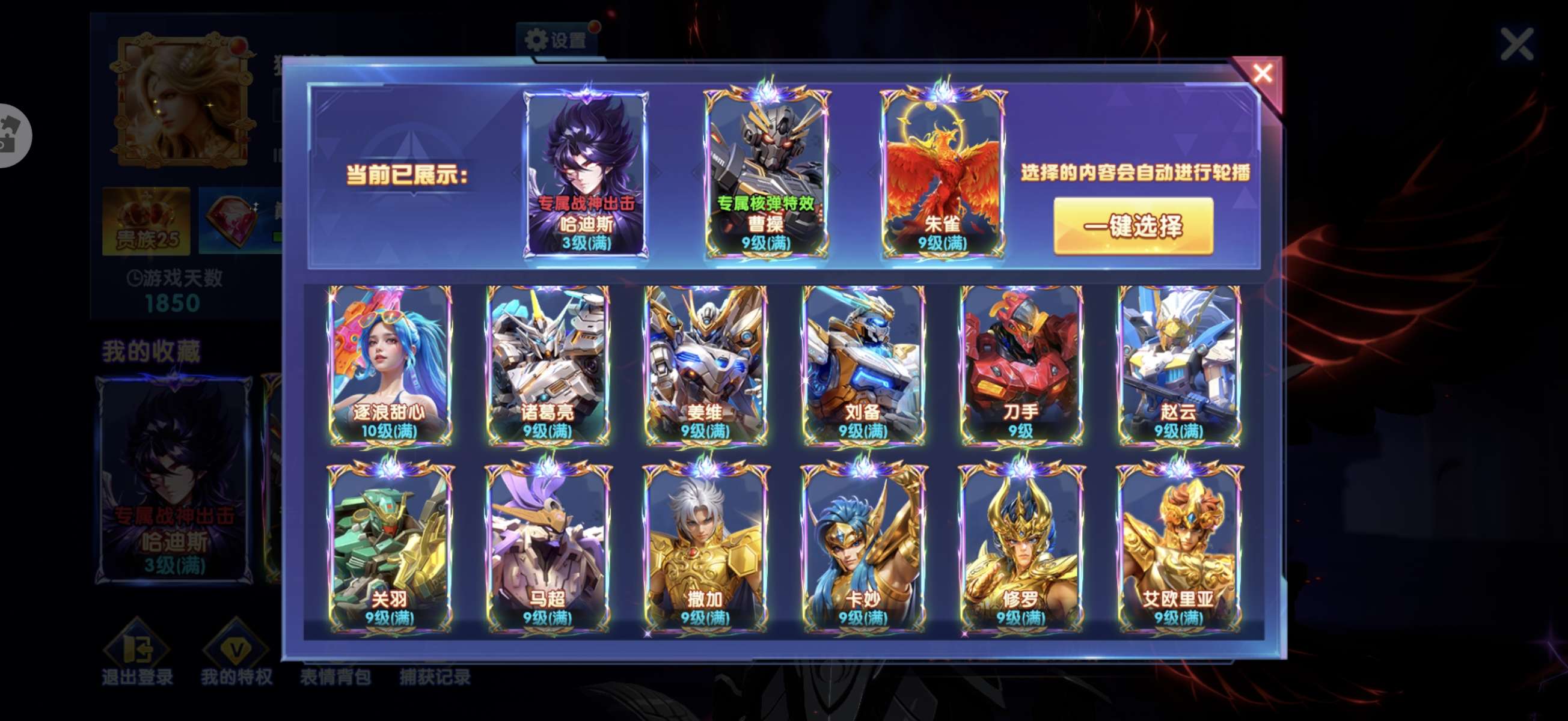 暗星全激活,圣斗士99999888888,新天使766533。曹操9,司马准8级,救济4京,议价勿扰