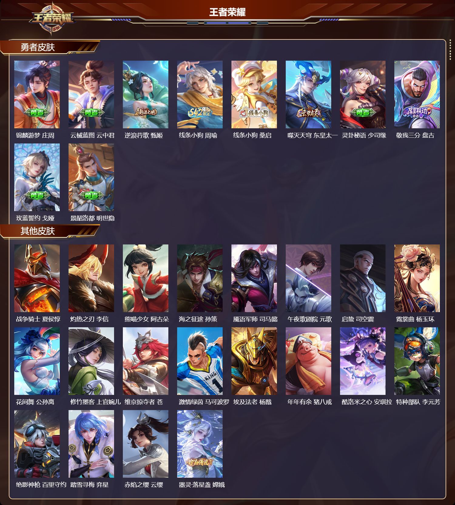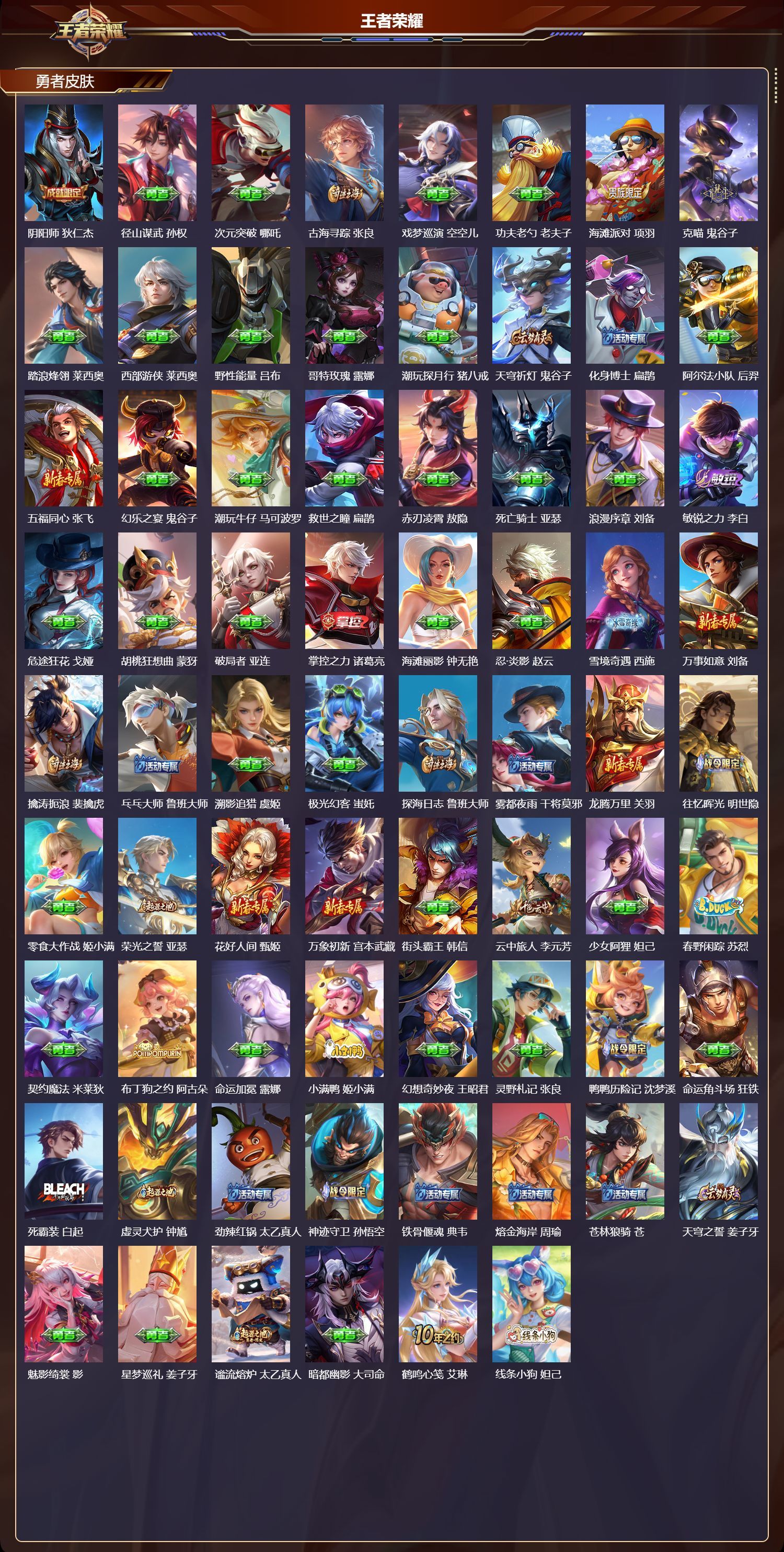 安卓QQ/荣耀王者/167皮肤/128英雄/1典藏/0珍品无双/0无双/2珍品传说/4传说/47史诗